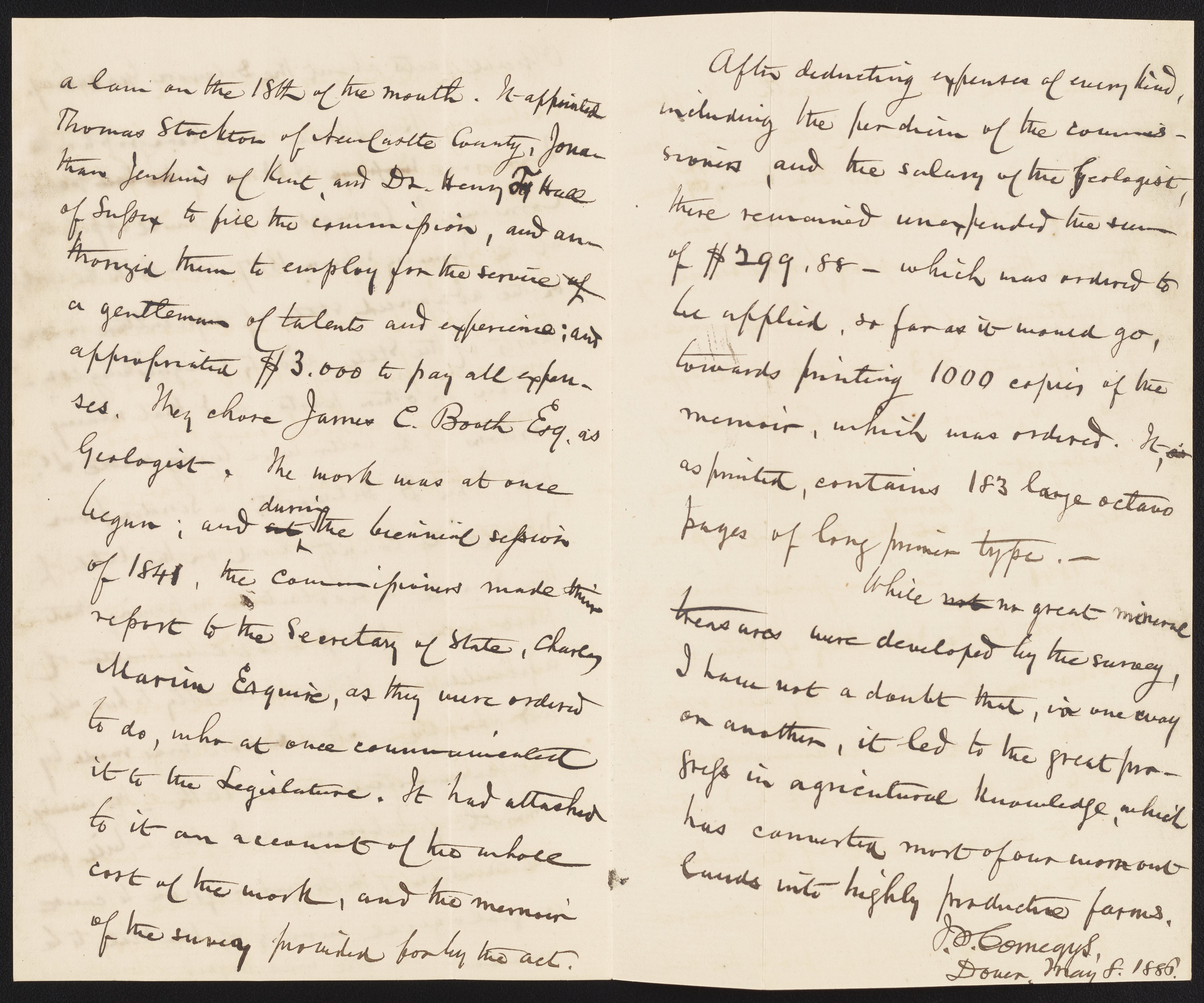 Spruance, William C. (William Corbit). “Letter from W.C. Spruance to James Curtis Booth,” May 7, 1886. Papers of James Curtis Booth, Box 2, Folder 7. Science History Institute. Philadelphia. https://digital.sciencehistory.org/works/k0lxixk.