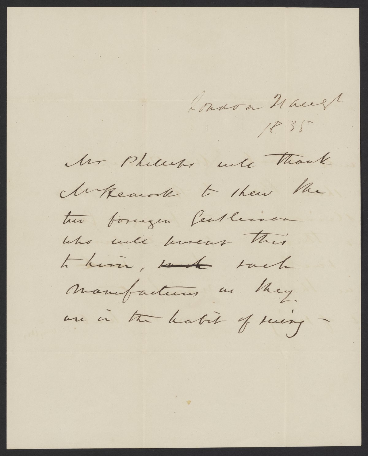 Letter from Professor Phillips to Mr. Heacock