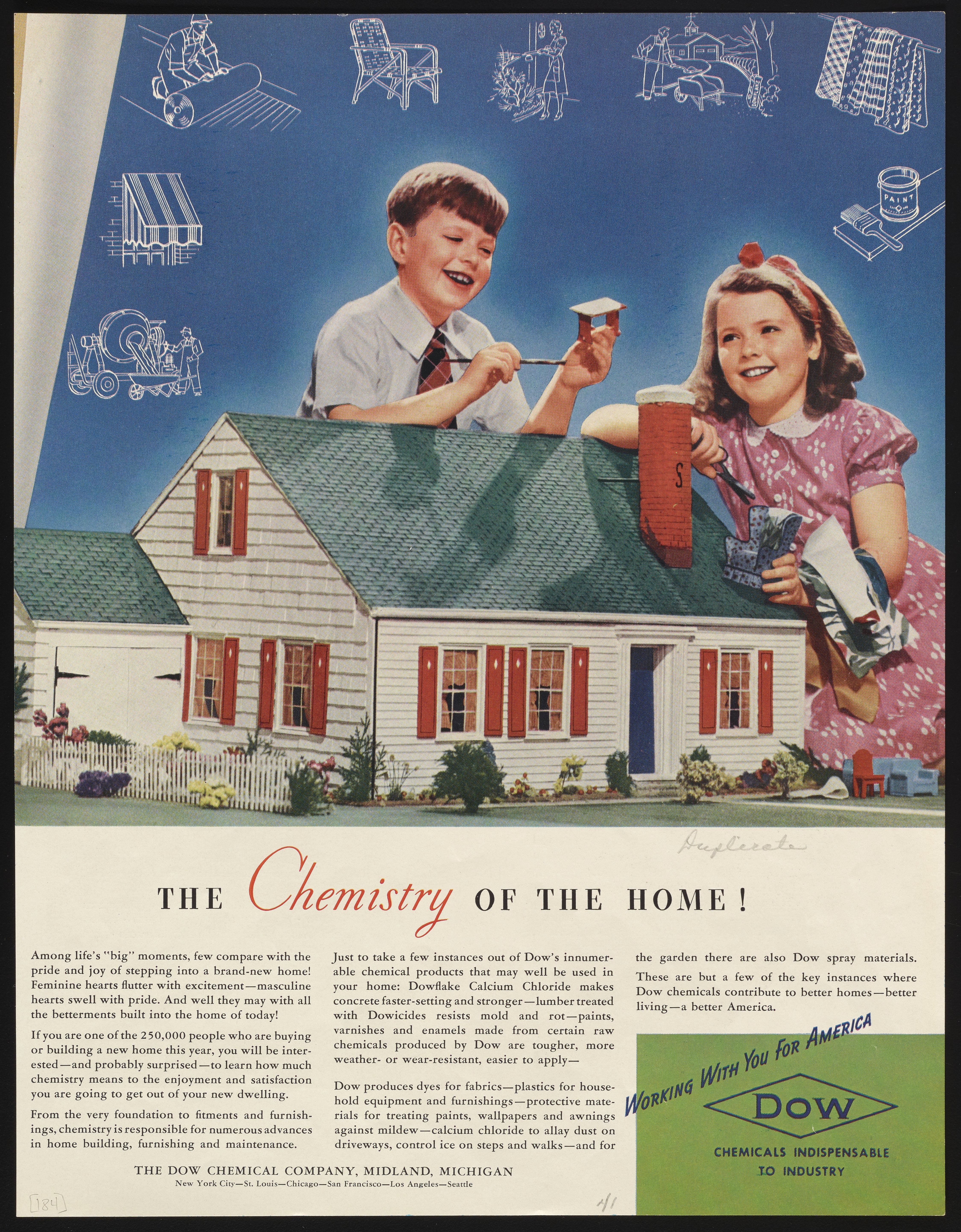 Dow Chemical Company. “The Chemistry of the Home!,” 1941. Advertisements from the Dow Chemical Historical Collection, Box 7. Science History Institute. Philadelphia. https://digital.sciencehistory.org/works/k35695028.