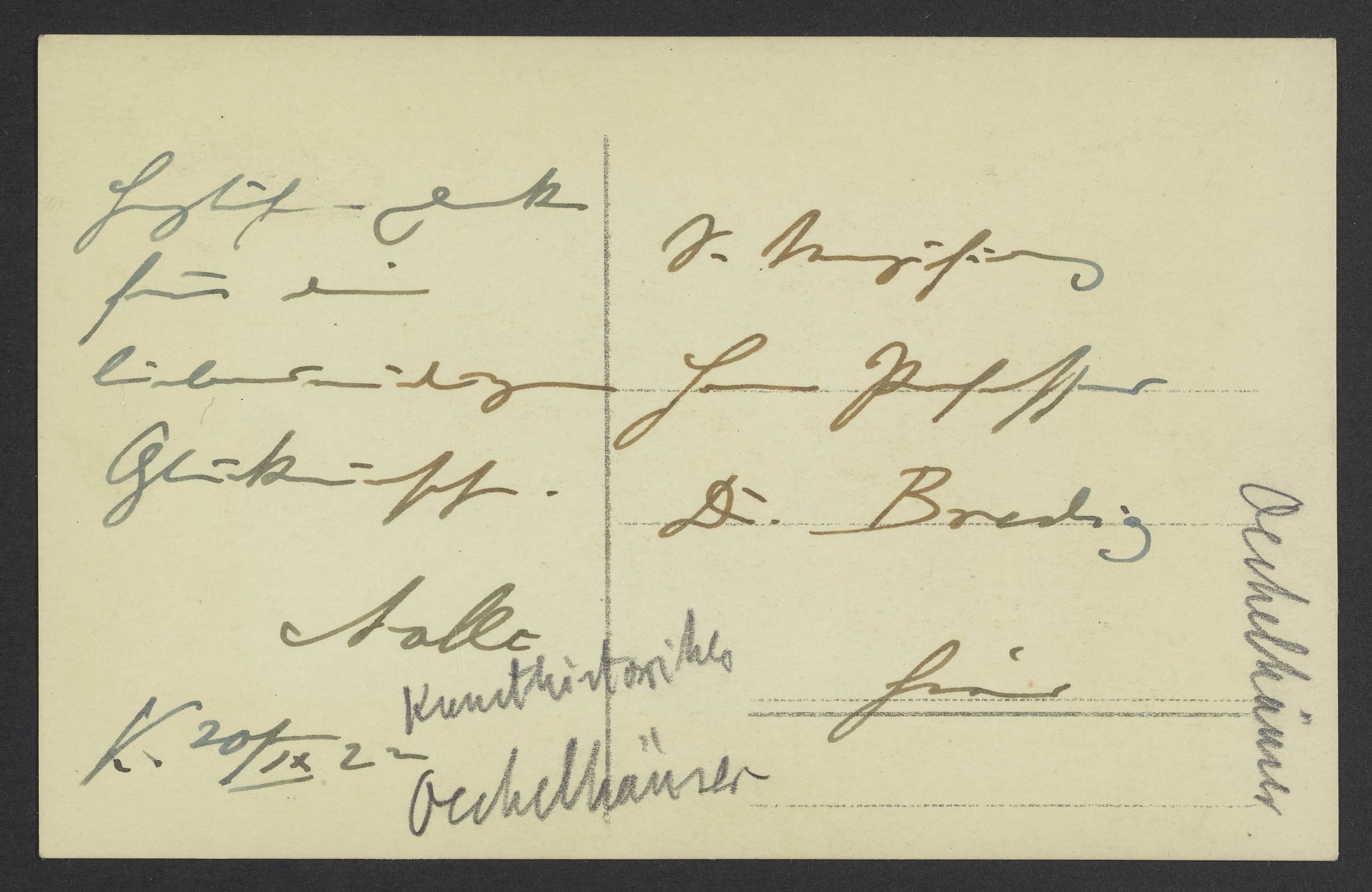 Postcard from Adolf von Oechelhäuser to Georg Bredig, 1922