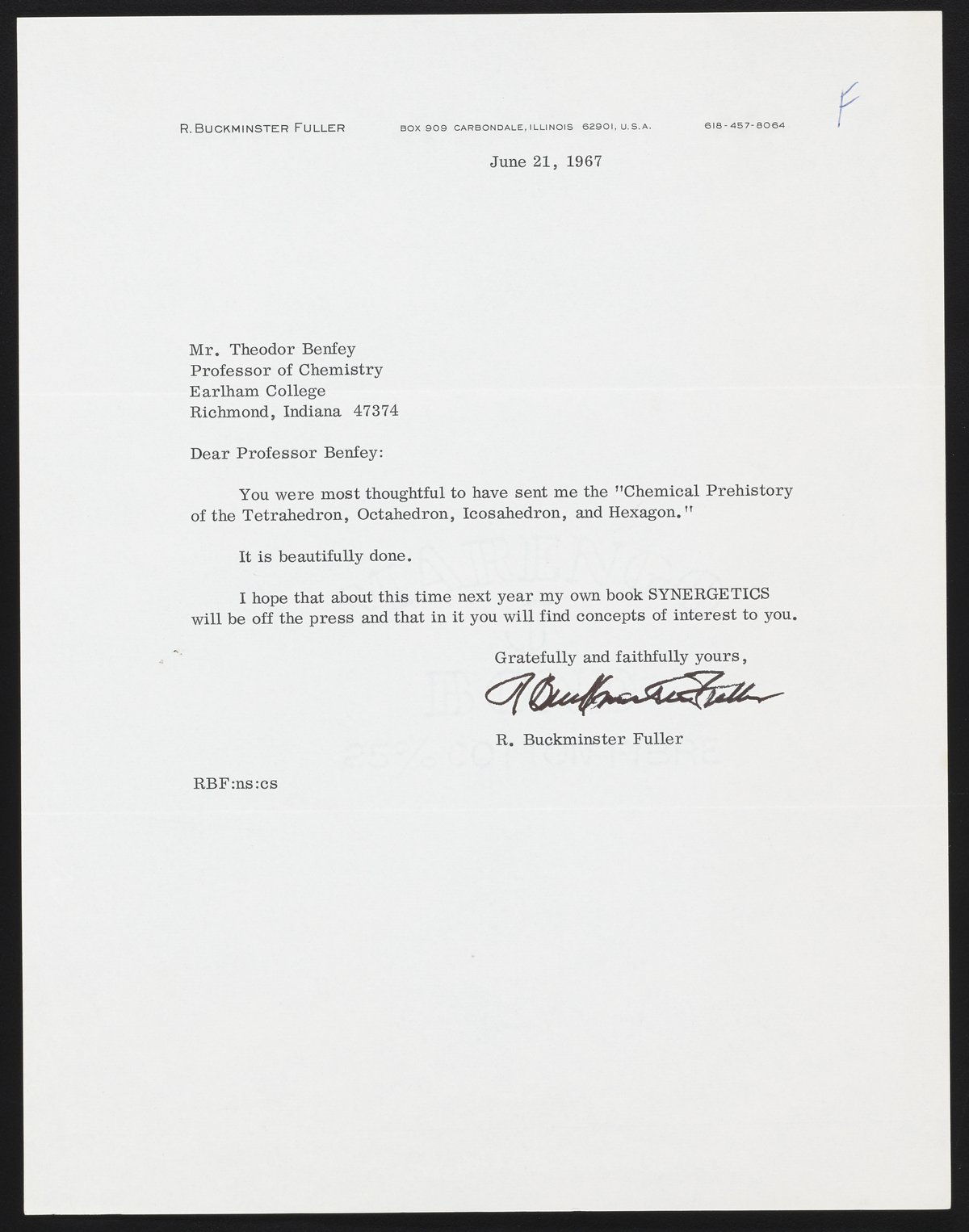 Letter from R. Buckminster Fuller to Theodore Benfey