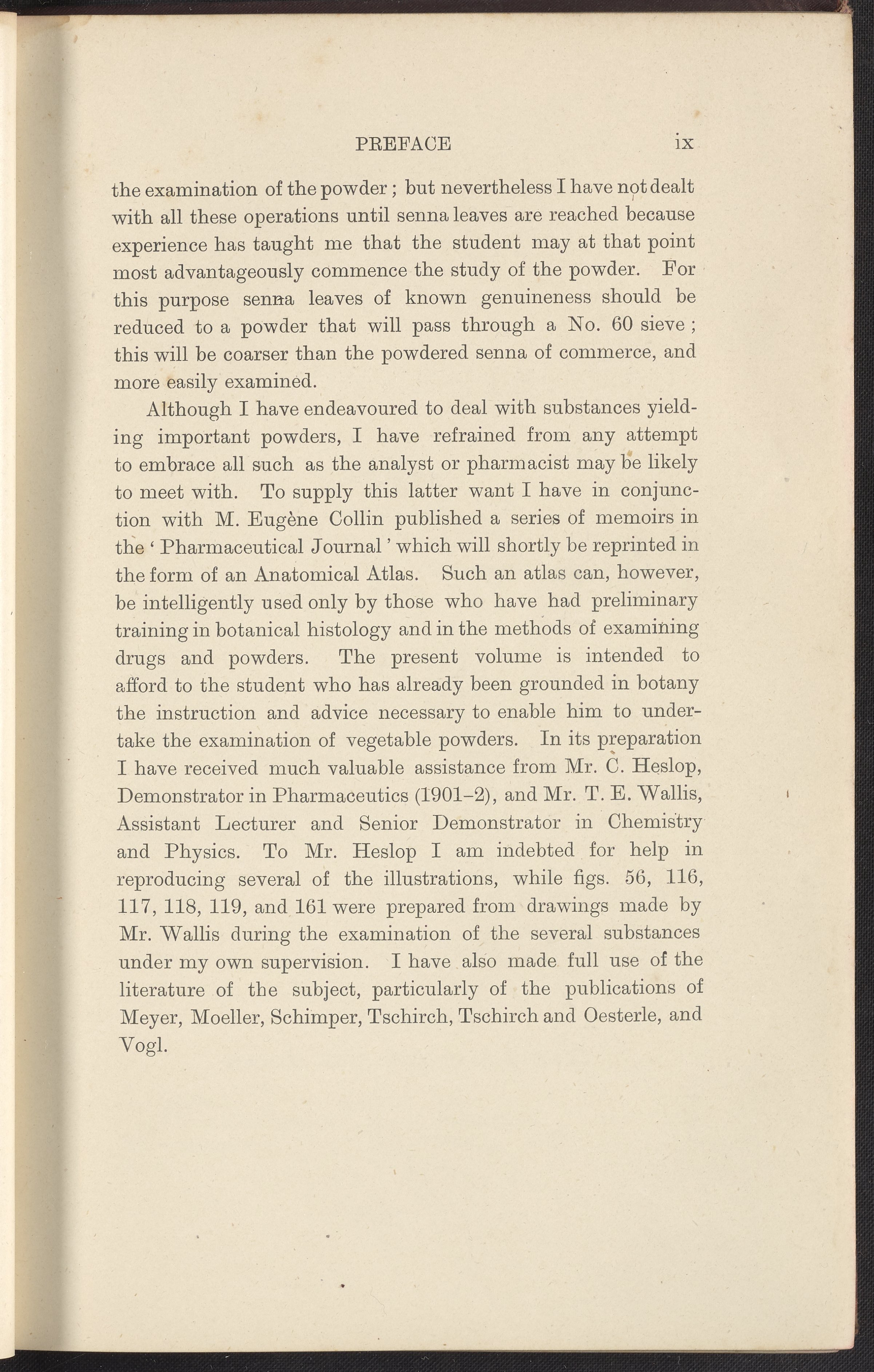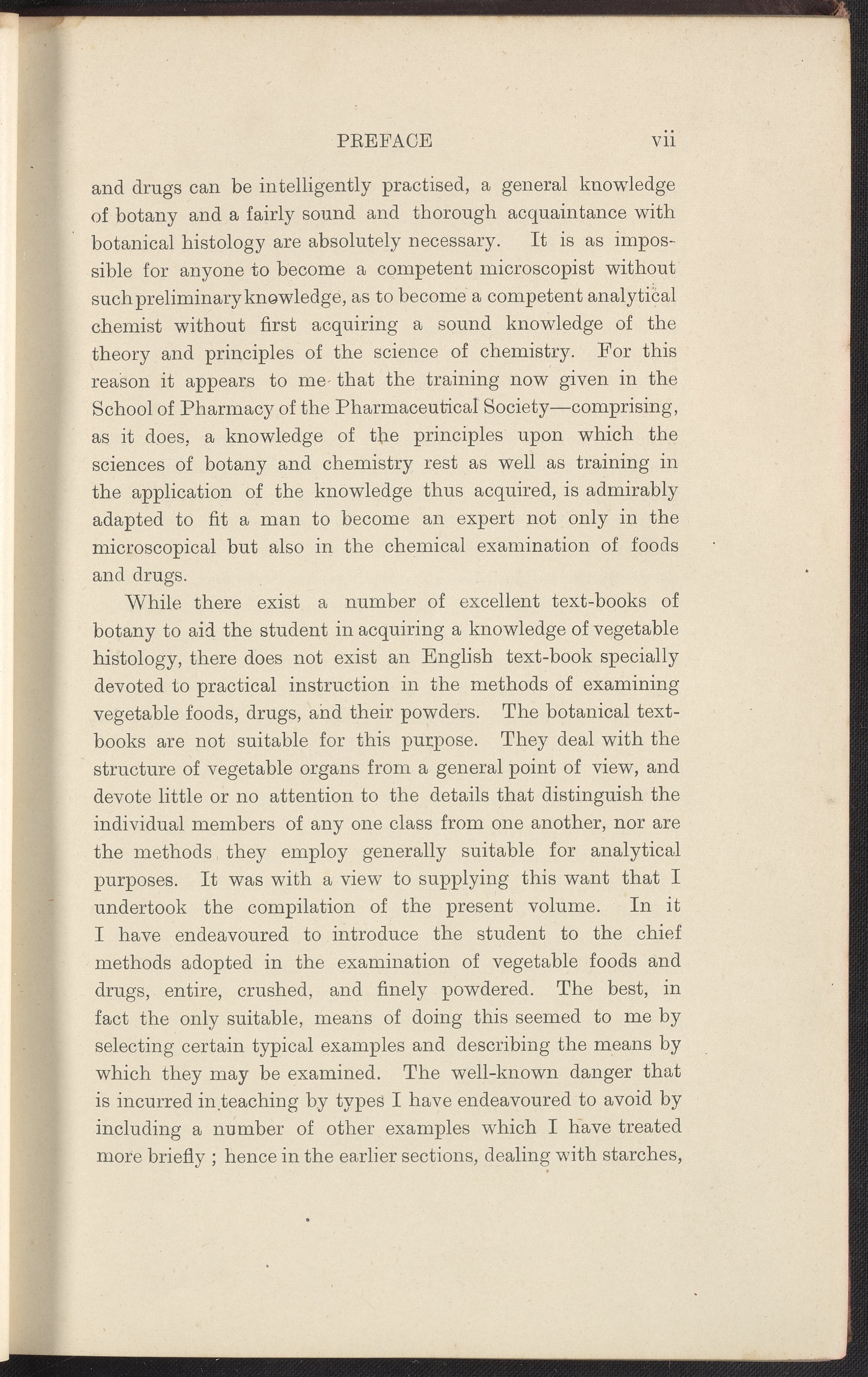 Small JPG1200 x 1698px — 432 KBFull-sized JPG2728 x 3859px — 2.0 MBOriginal fileTIFF — 2728 x 3859px — 30.2 MBA textbook specifically devoted to the "practical instruction in the methods of examining vegetable foods, drugs, and their powders" written by Henry George Greenish, Professor of Pharmaceutics to the Pharmaceutical Society of Great Britain. Intended to provide students who already possess a background in botany the instruction necessary to examine vegetable powders. Content is ordered from the least complicated structures (starches) to the most complex forms (fruits and roots). Includes 168 illustrations of microscopic views, appendices listing reagents of general utility and the chief varieties of cell walls and contents, an index, and a list of other publications by J. & A. Churchill publishers. The work is digitized in its entirety.