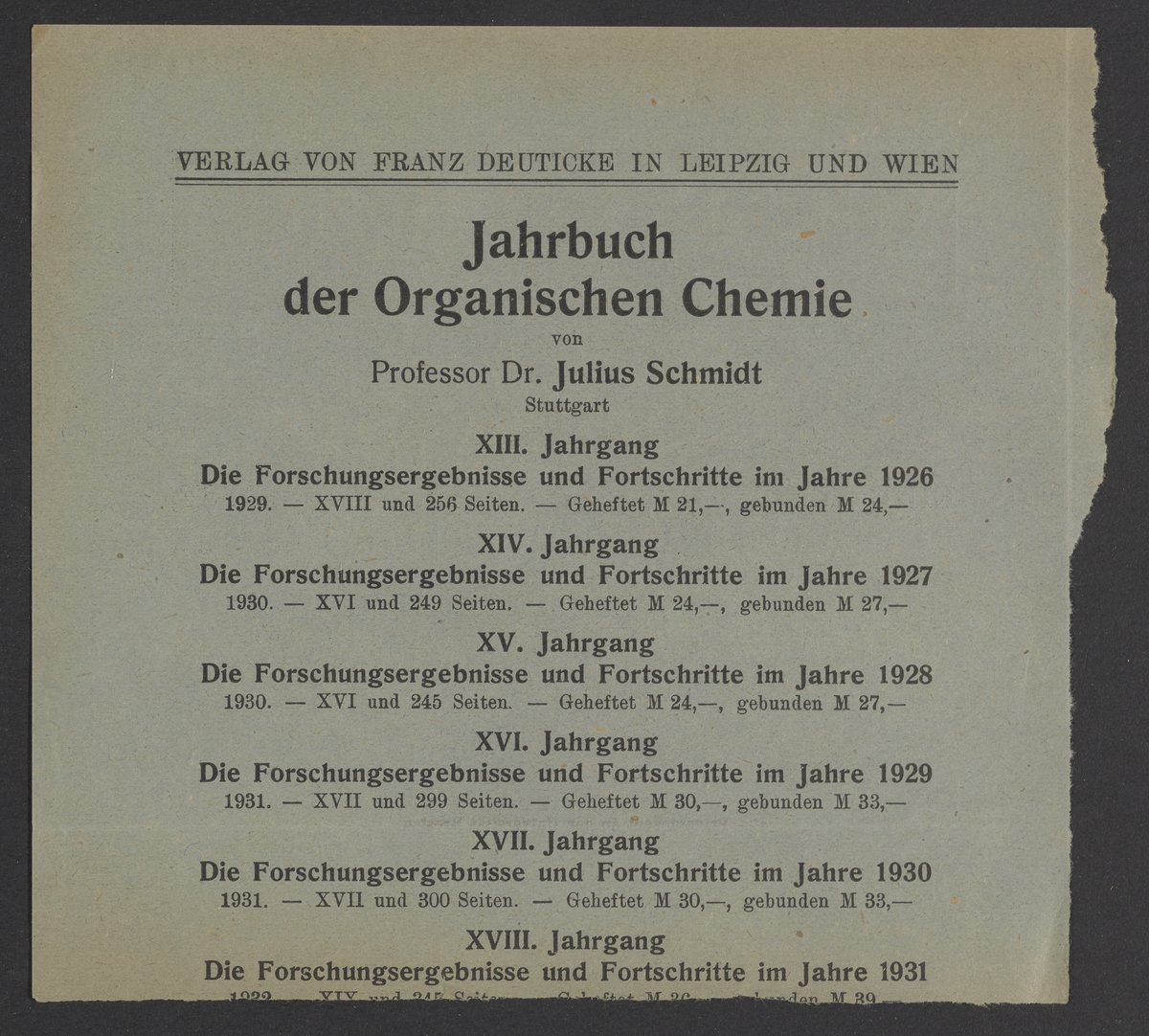 Verlag Franz Deuticke (Vienna, Austria). “Advertisements for Publications from Verlag Franz Deutick,” circa 1937. Papers of Georg and Max Bredig, Box 3, Folder 6. Science History Institute. Philadelphia. https://digital.sciencehistory.org/works/k7m1rj2.