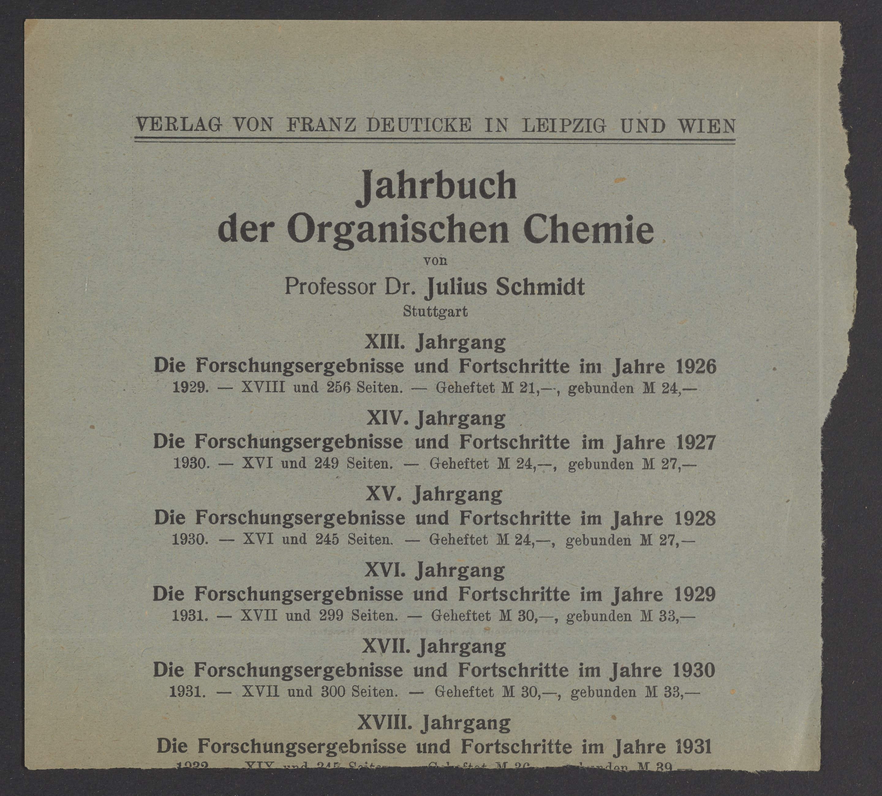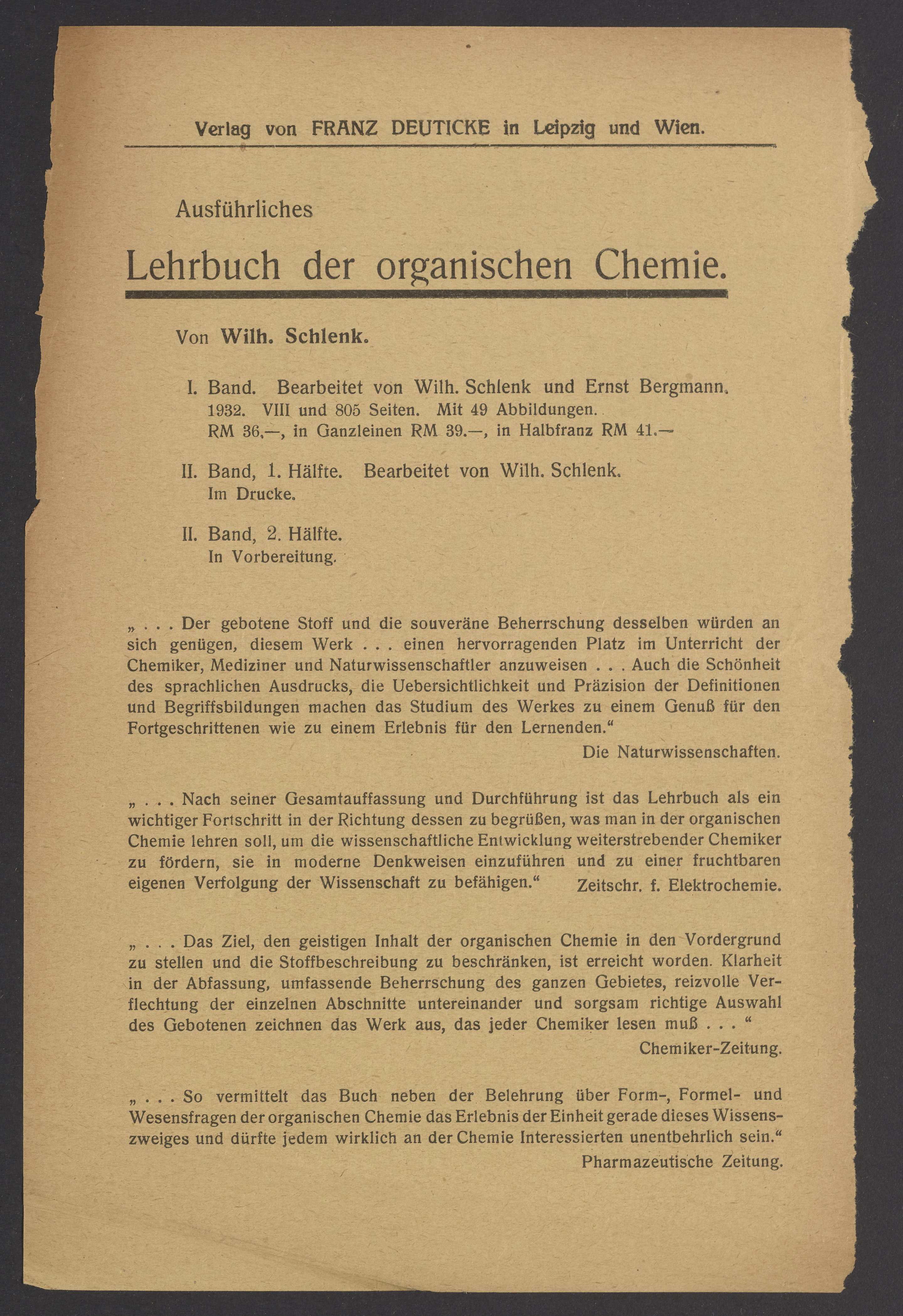 Verlag Franz Deuticke (Vienna, Austria). “Advertisements for Publications from Verlag Franz Deutick,” circa 1937. Papers of Georg and Max Bredig, Box 3, Folder 6. Science History Institute. Philadelphia. https://digital.sciencehistory.org/works/k7m1rj2.