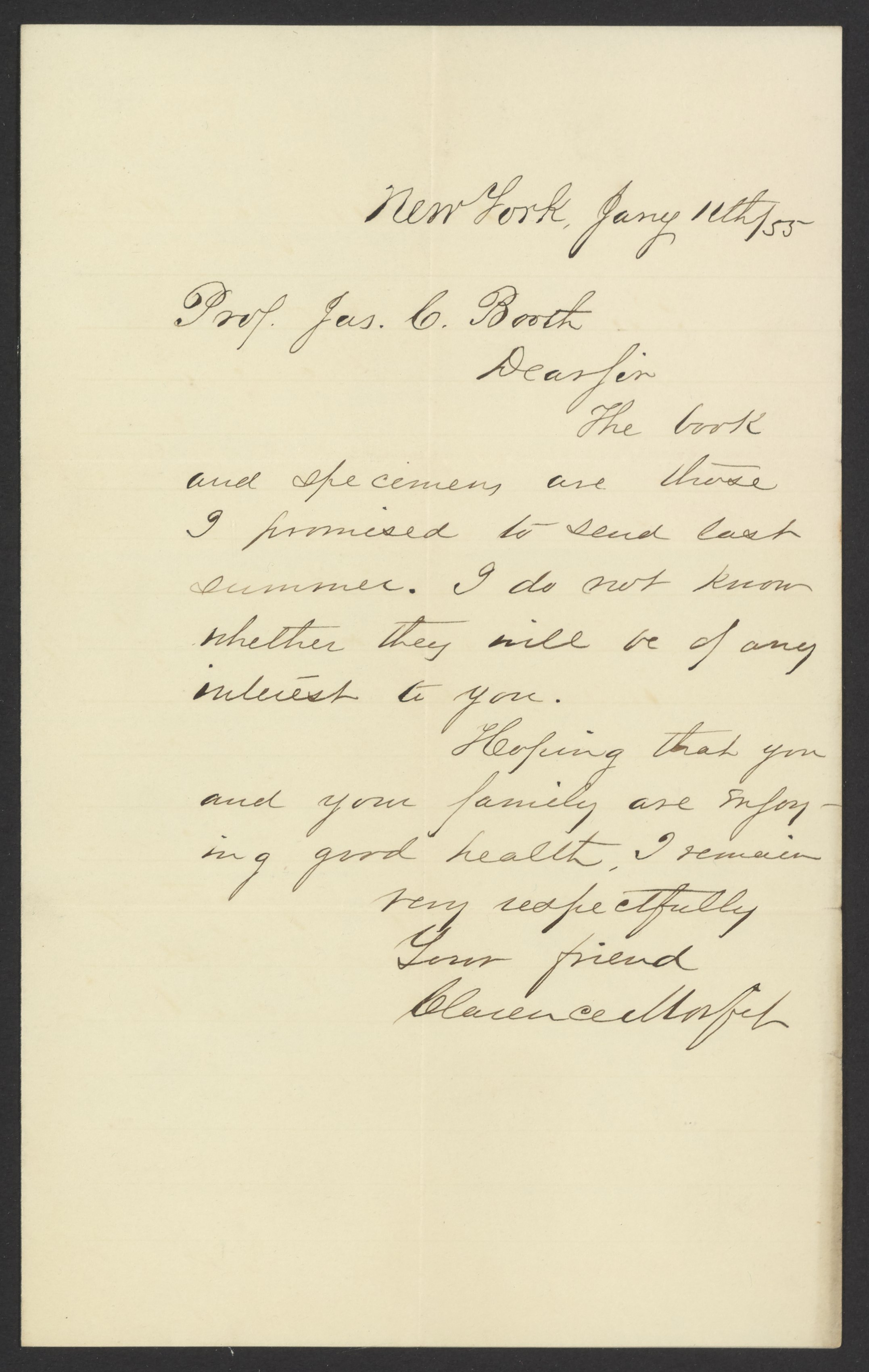 Letter from Clarence Morfit to James Curtis Booth, January 11, 1855