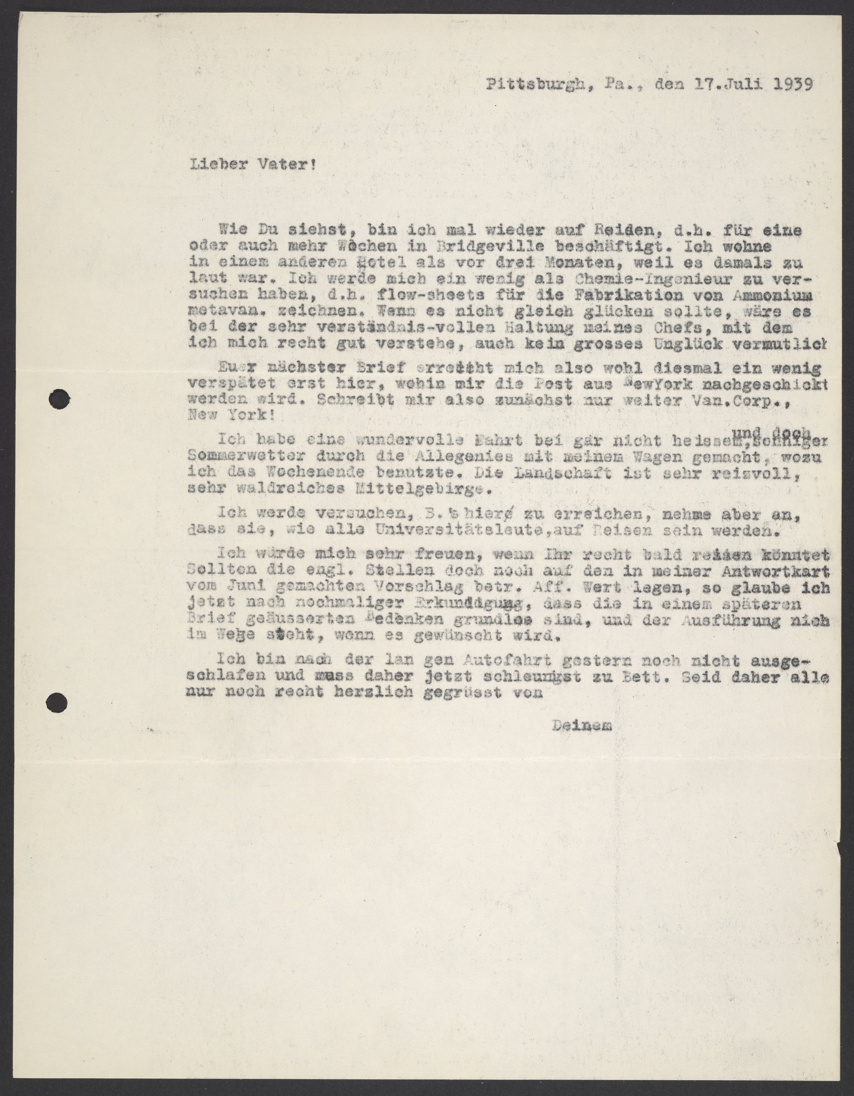 Letter from Max Bredig to Georg Bredig, July 17, 1939