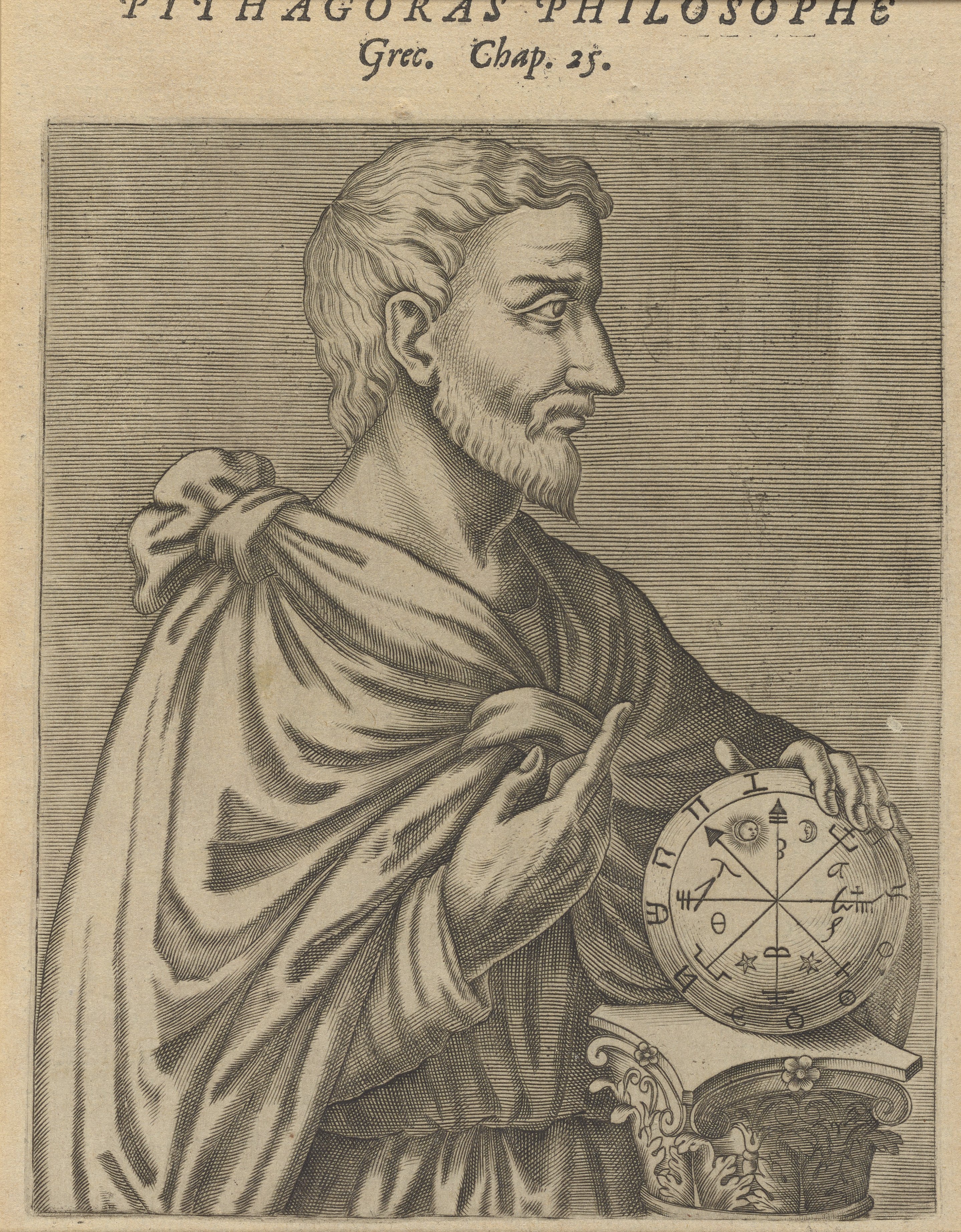 “Pythagoras Philosophe.” Laid paper, paper (fiber product). Paris, France, circa 1584. Science History Institute. Philadelphia. https://digital.sciencehistory.org/works/kd17ct477.