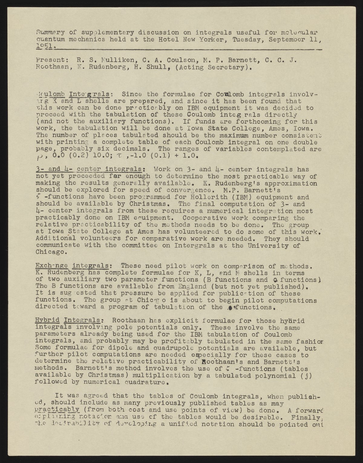 Shull, Harrison. “Summary of Supplementary Discussion on Integrals Useful for Molecular Quantum Mechanics, 1951,” September 11, 1951. Robert S. Mulliken & Harrison Shull Correspondence, Box 1, Folder 2. Science History Institute. Philadelphia. https://digital.sciencehistory.org/works/kk91fk57q.