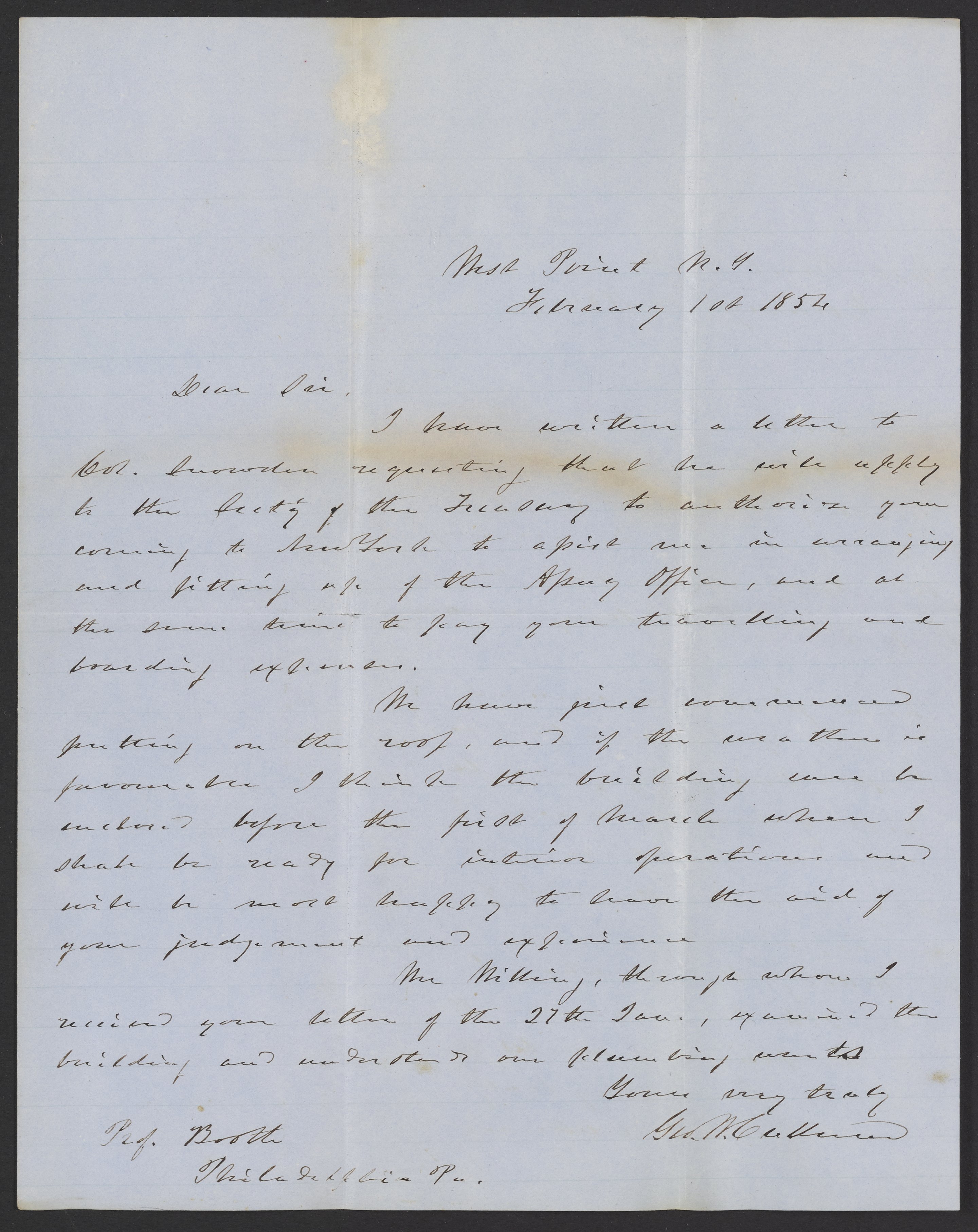 Cullom, G.W. “Letter from G.W. Cullom to James Curtis Booth, February 1, 1854,” February 1, 1854. Papers of James Curtis Booth, Box 1, Folder 6. Science History Institute. Philadelphia. https://digital.sciencehistory.org/works/kkw61y9.