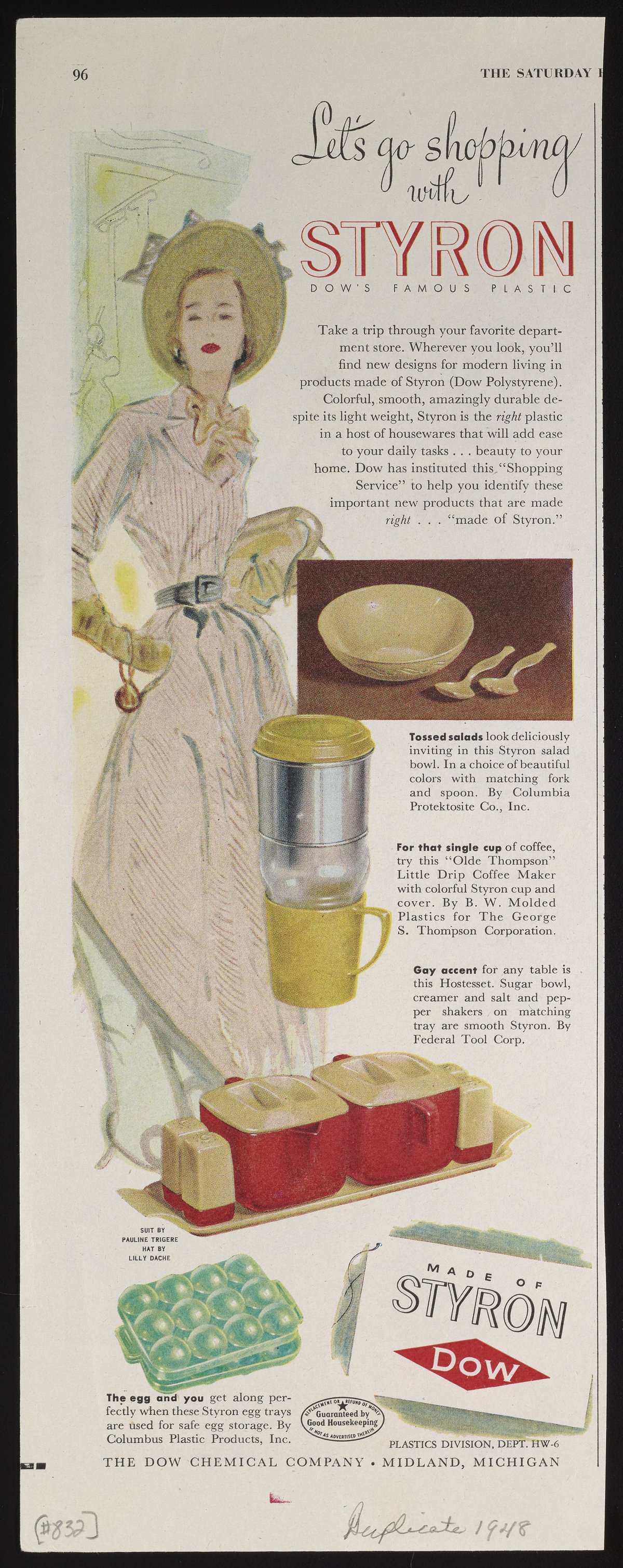 Dow Chemical Company. “Let's Go Shopping with Styron,” 1948. Advertisements from the Dow Chemical Historical Collection, Box 9. Science History Institute. Philadelphia. https://digital.sciencehistory.org/works/kn9jiyf.