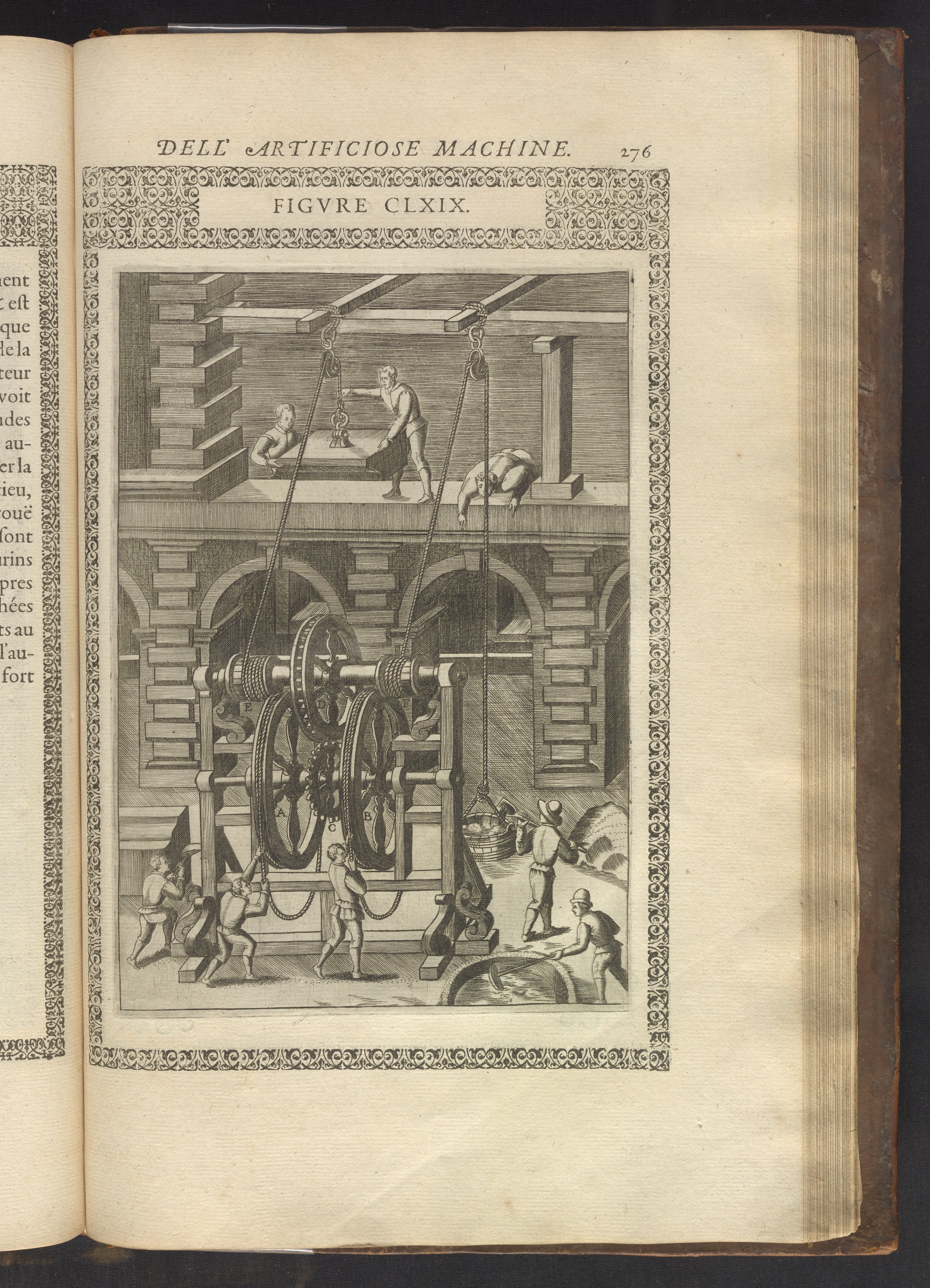 Ramelli, Agostino. “Plate 169: Crane for Lifting Heavy Weights.” In Le Diverse Et Artificiose Machine Del Capitano Agostino Ramelli. Paris, France, 1588. https://digital.sciencehistory.org/works/kp78gg59s.