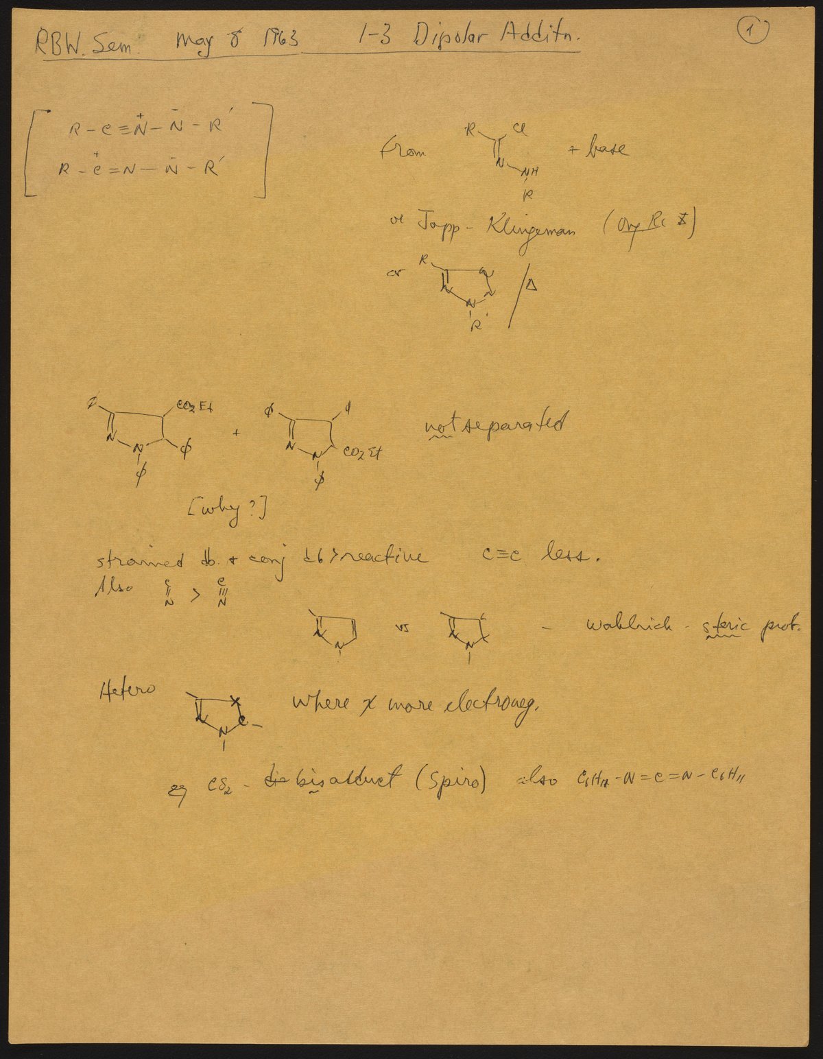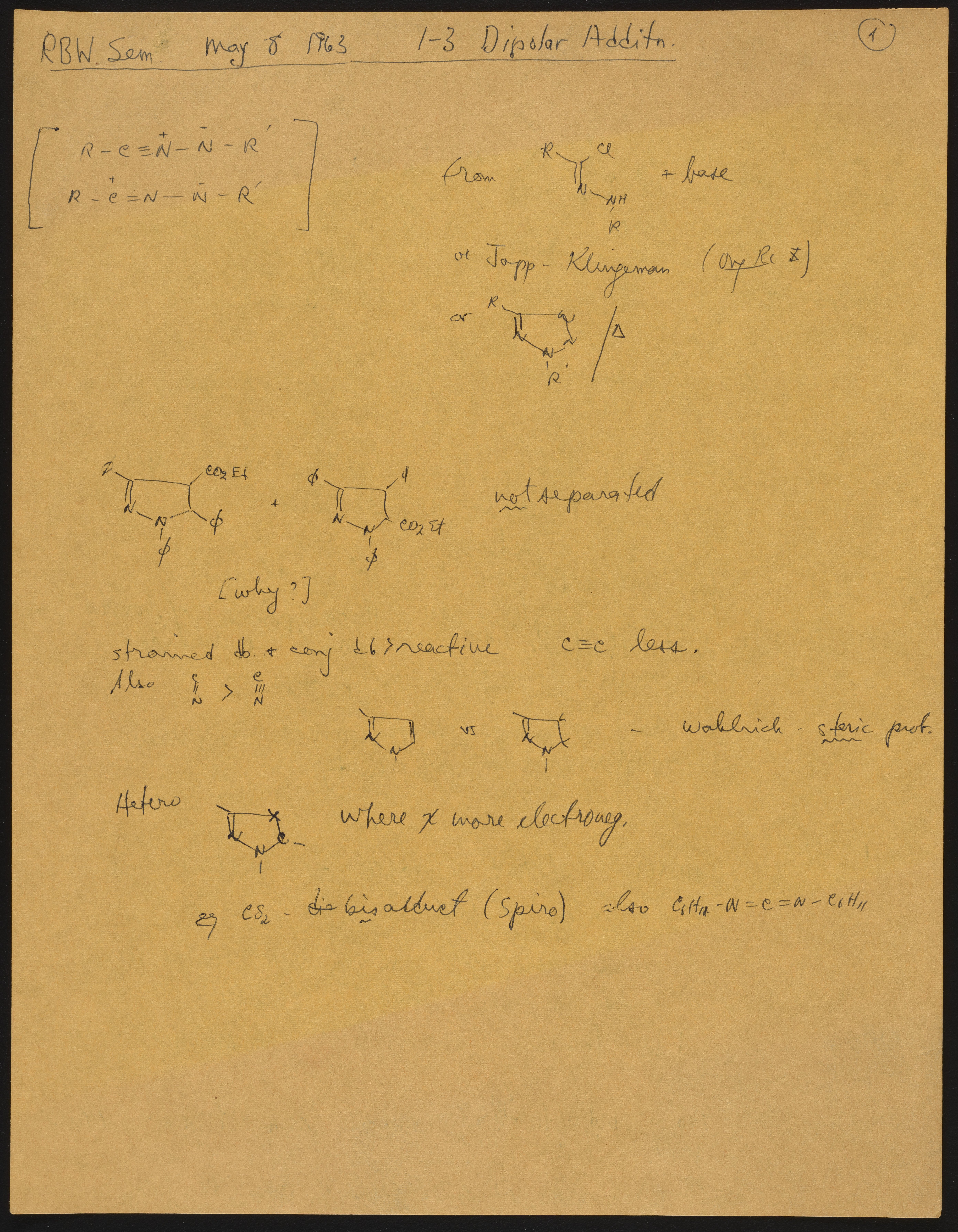 R. B. (Robert Burns) Woodward Seminar entitled "1-3 Dipolar [Addition]"