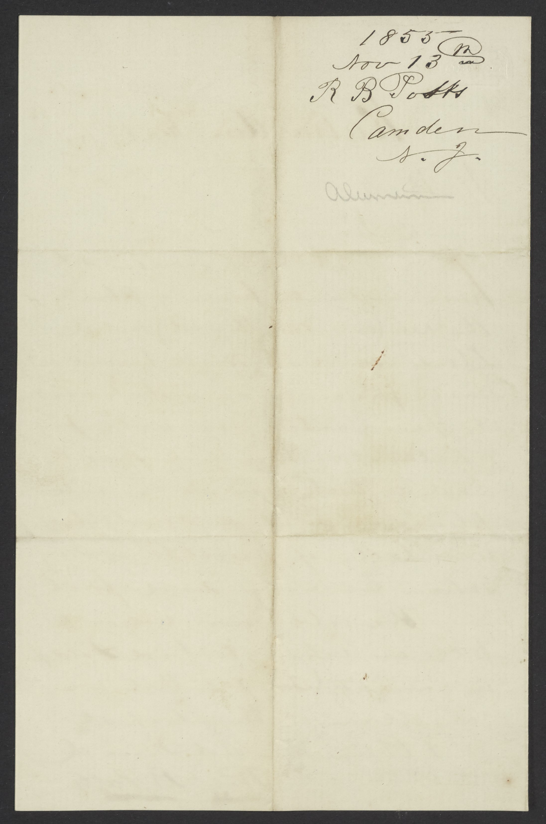 Letter from Robert B. Potts to James Curtis Booth, November 13, 1855