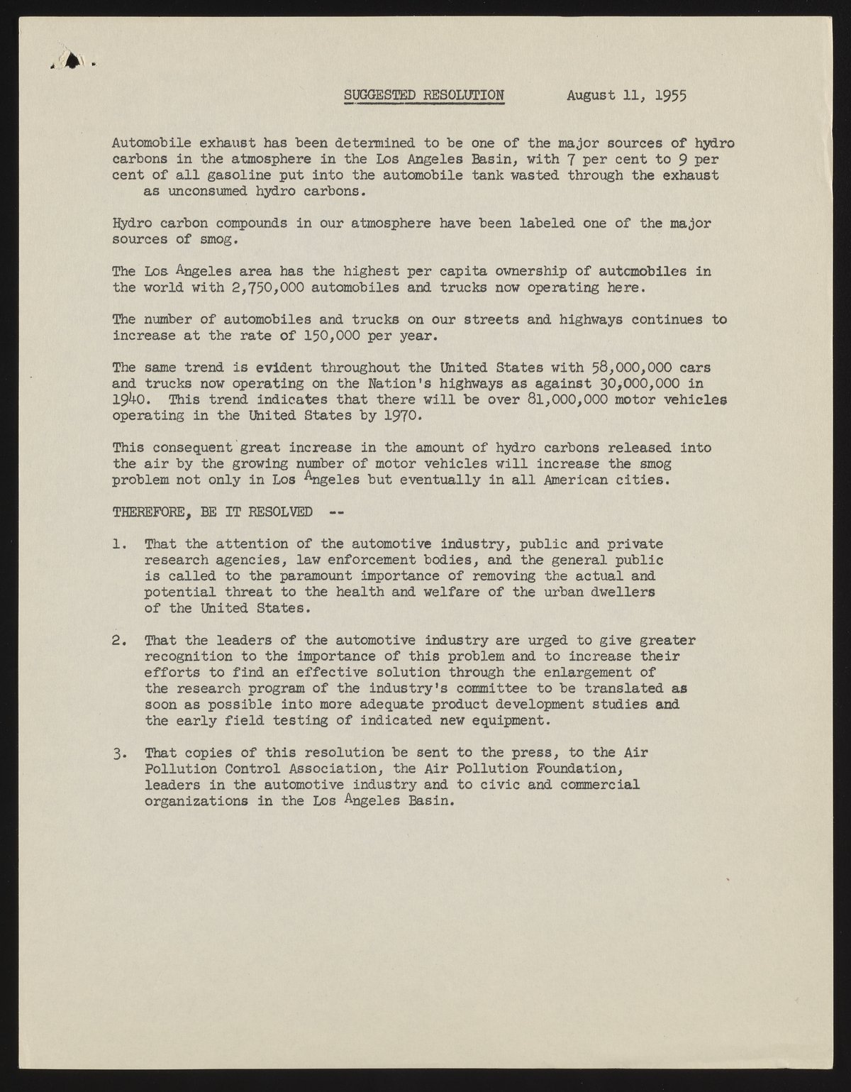 Small JPG1200 x 1530px — 302 KBFull-sized JPG2786 x 3551px — 1.3 MBOriginal fileTIFF — 2786 x 3551px — 28.4 MBThe agenda of the Los Angeles Chamber of Commerce Air Pollution Committee lists several "indicated current actions on the smog problem" and a suggested resolution. The documents includes Arnold O. Beckman's annotations.