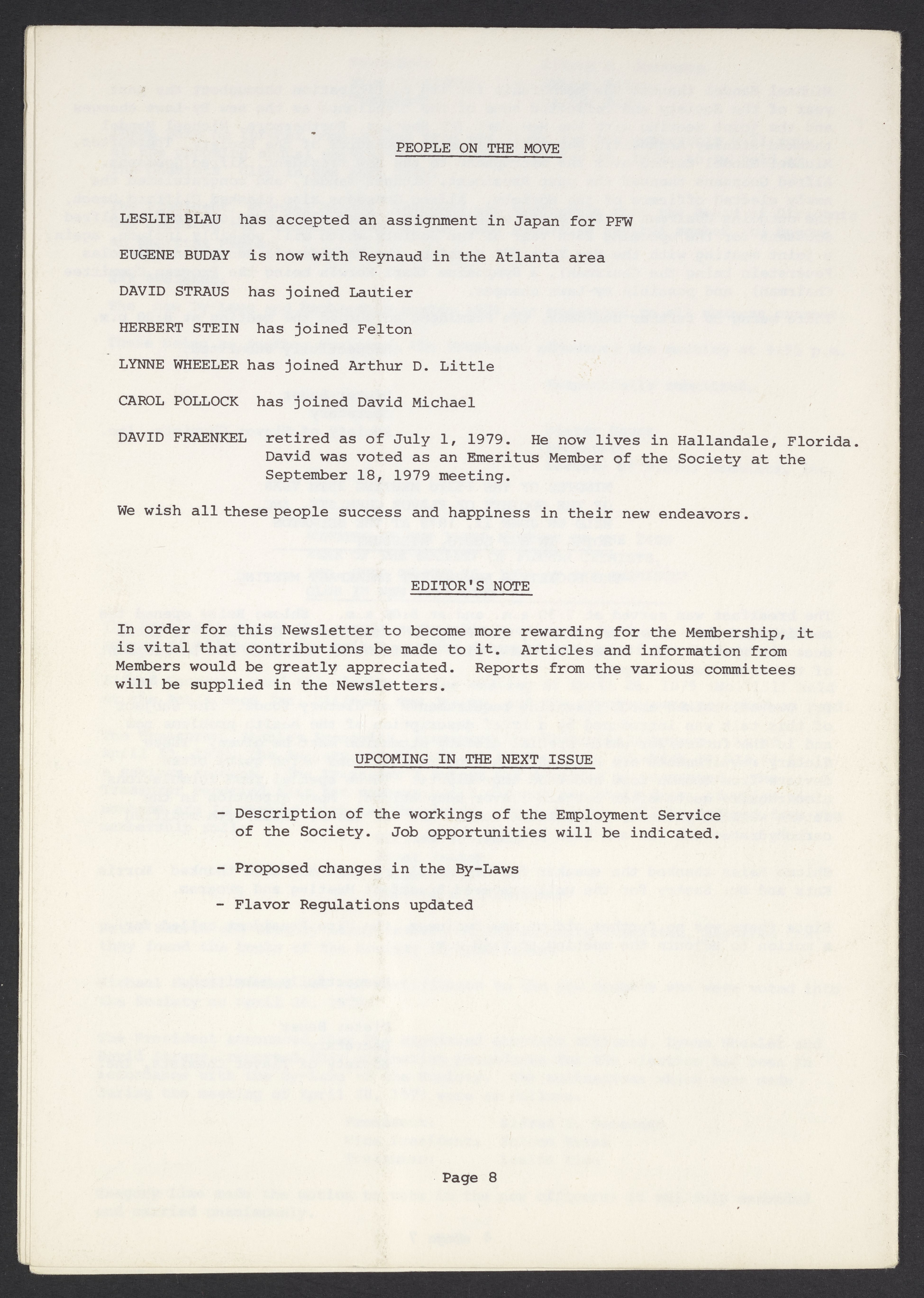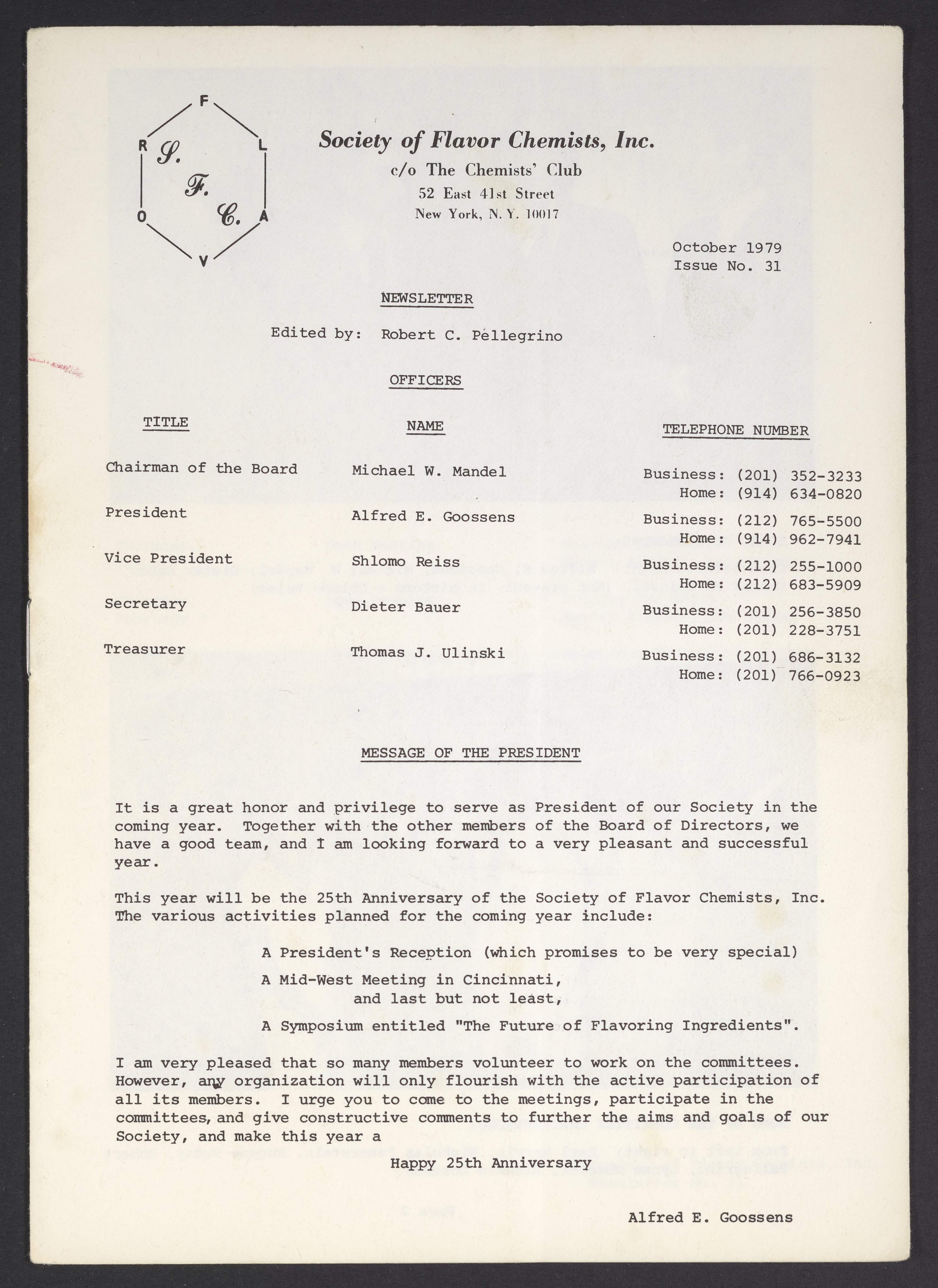 Society of Flavor Chemists newsletter, October 1979