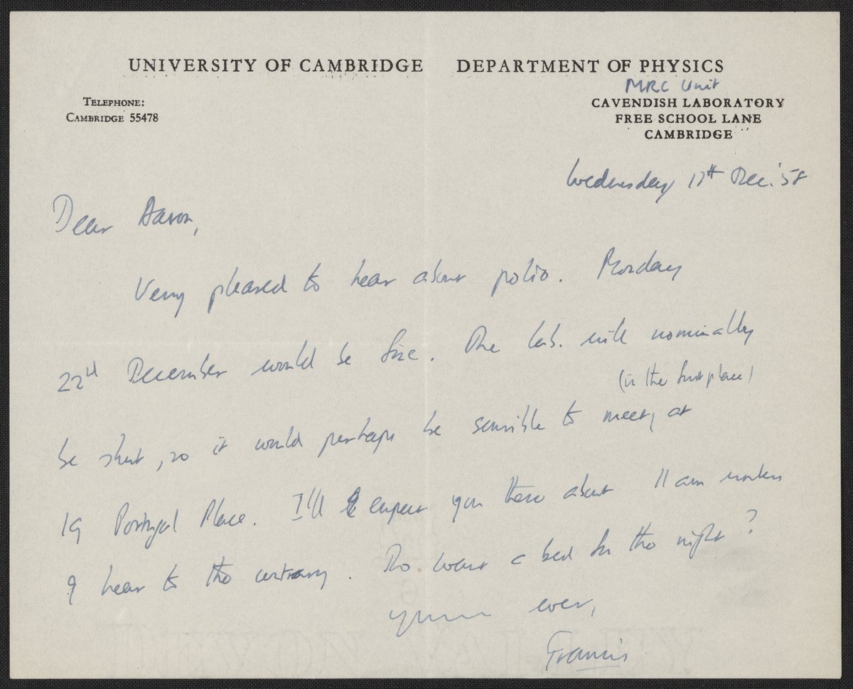 Letter from Francis Crick to Aaron Klug, December 17, 1958