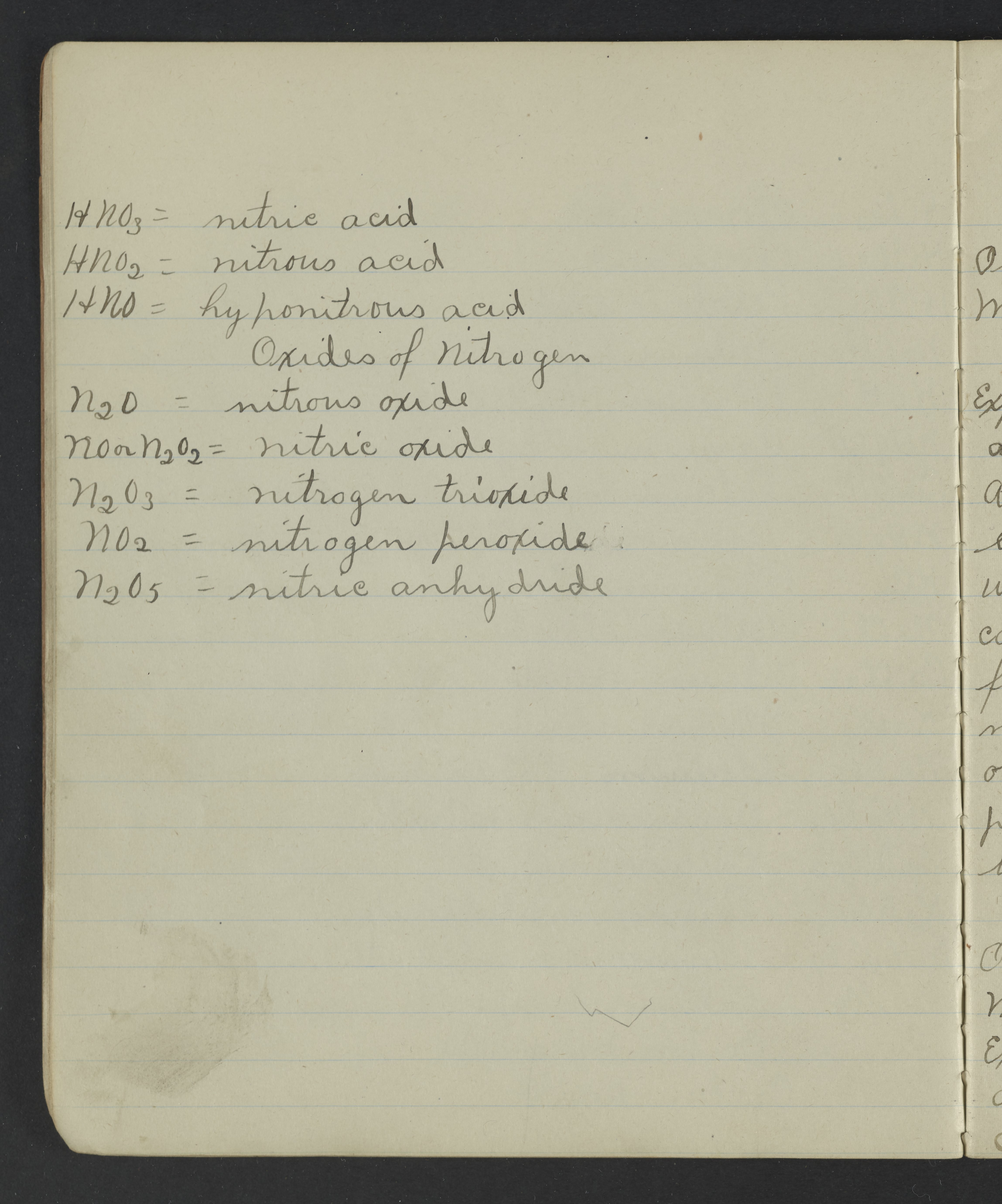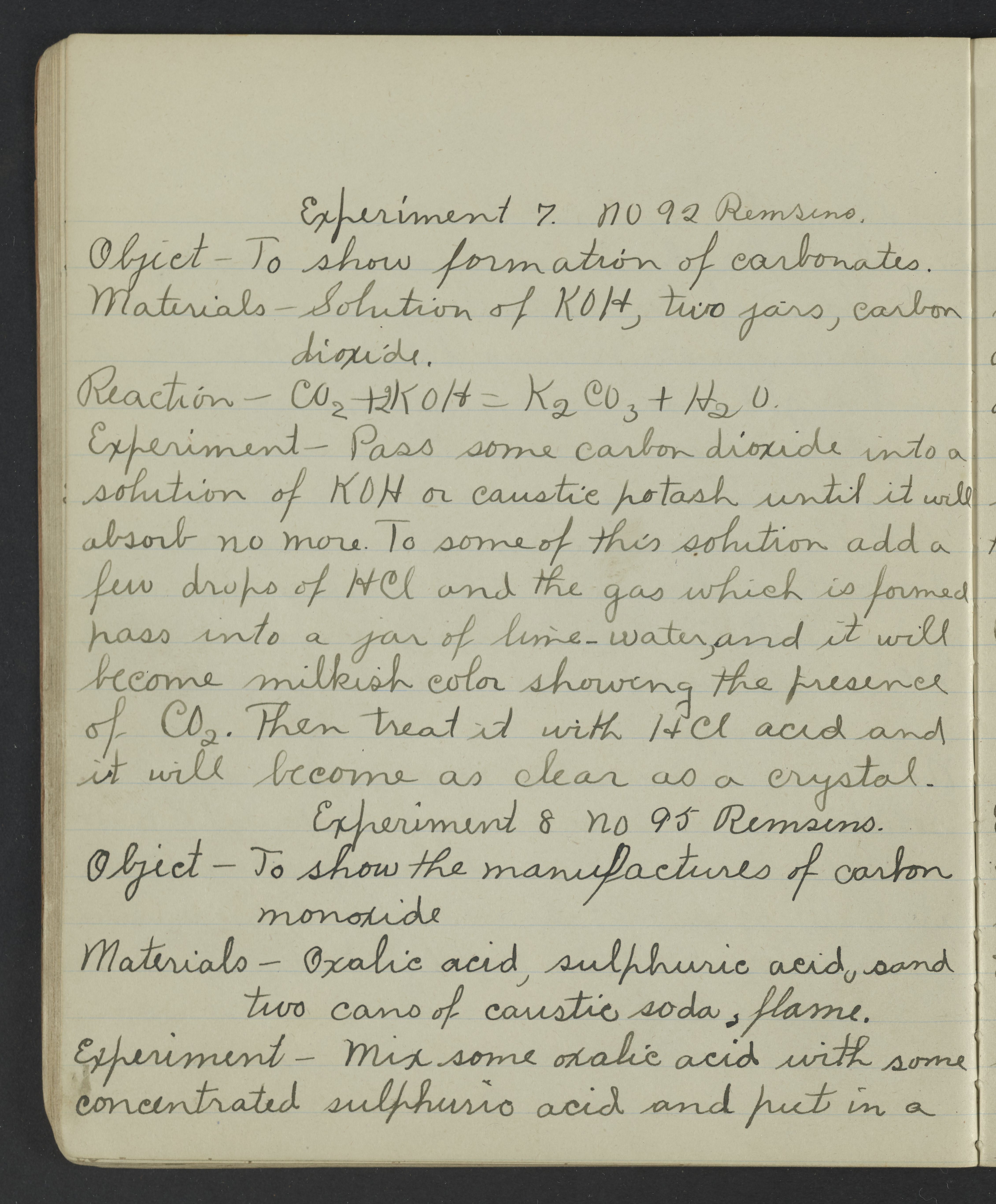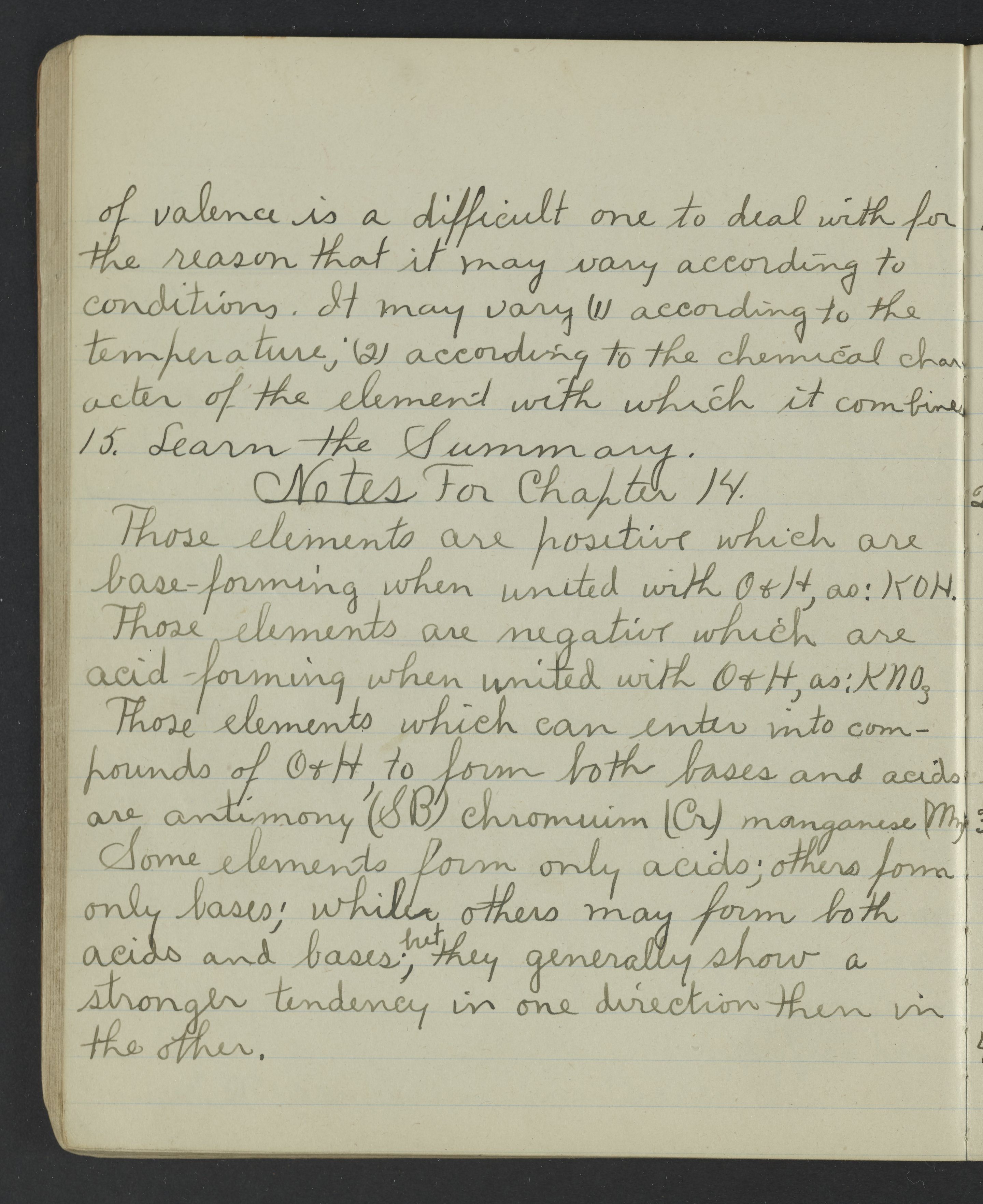 Brabenec, Rose Agnes. “Chemistry Notes Taken by Rose Agnes Brabenec,” 1907. Science History Institute. Philadelphia. https://digital.sciencehistory.org/works/l0kohab.