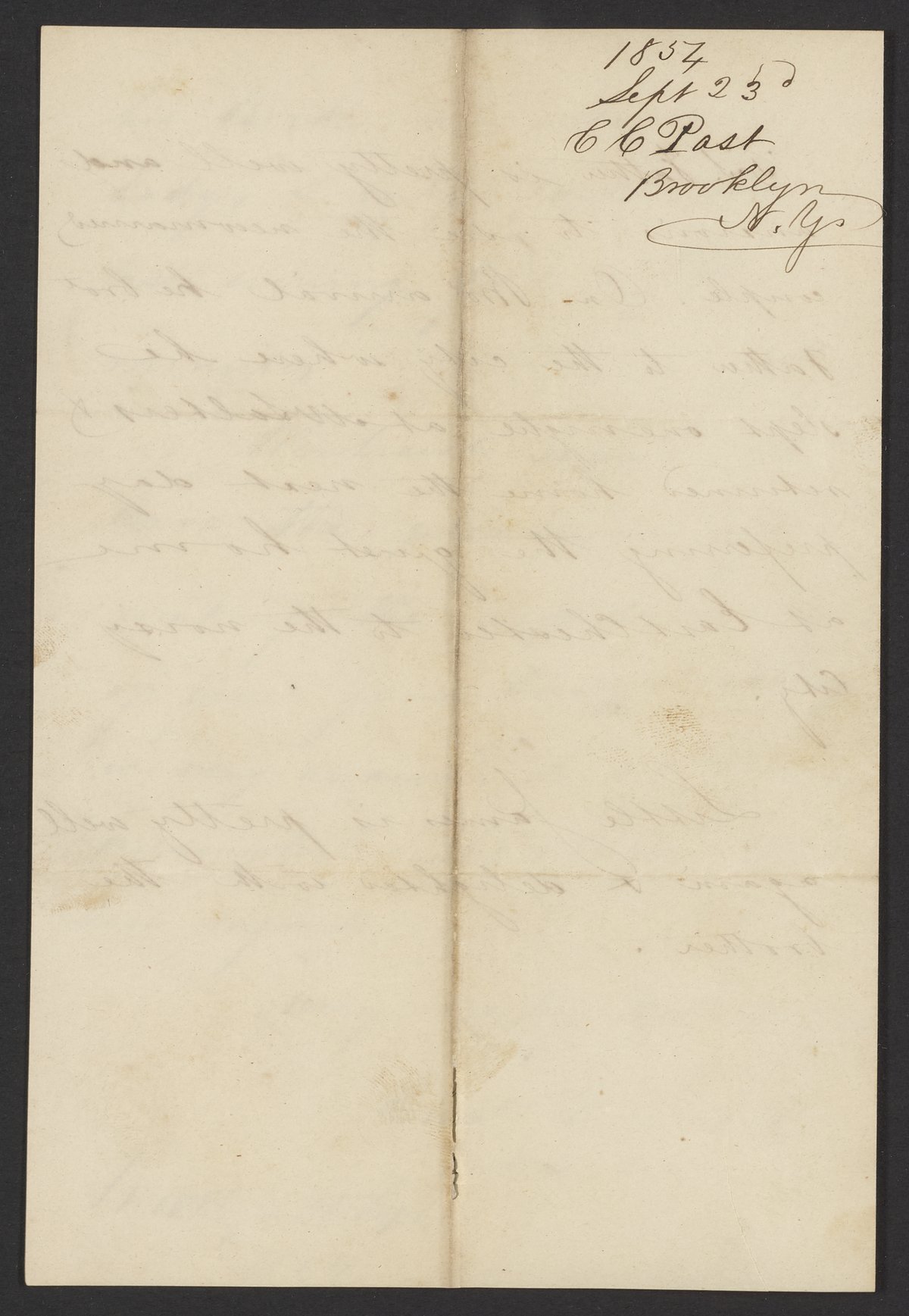 Letter from Charles C. Post to James Curtis Booth, September 23, 1854