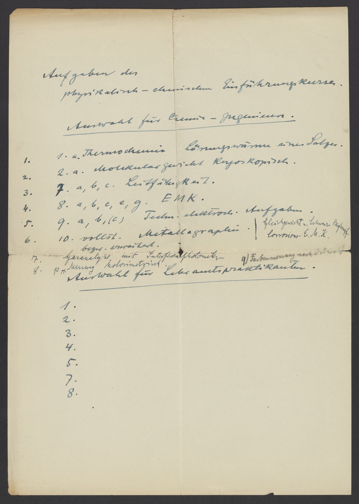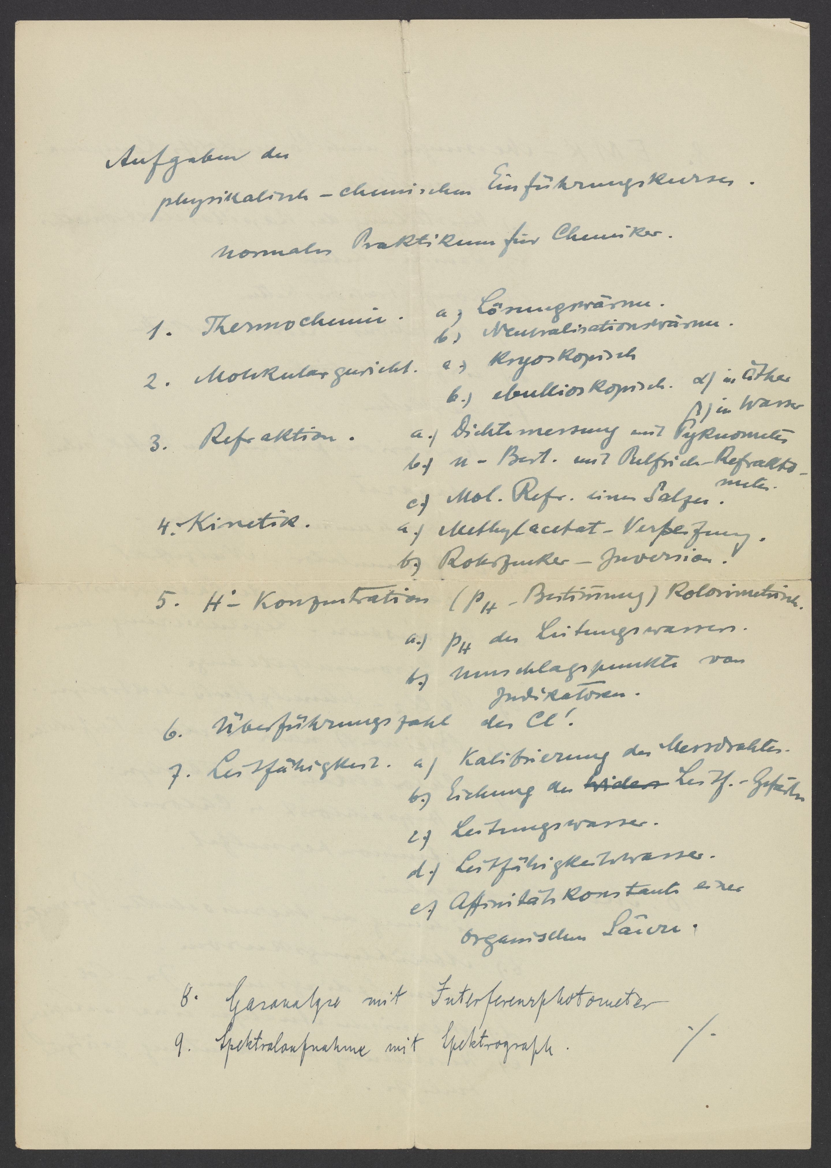Aufgaben der physikalisch-chemischen Einführungskurs