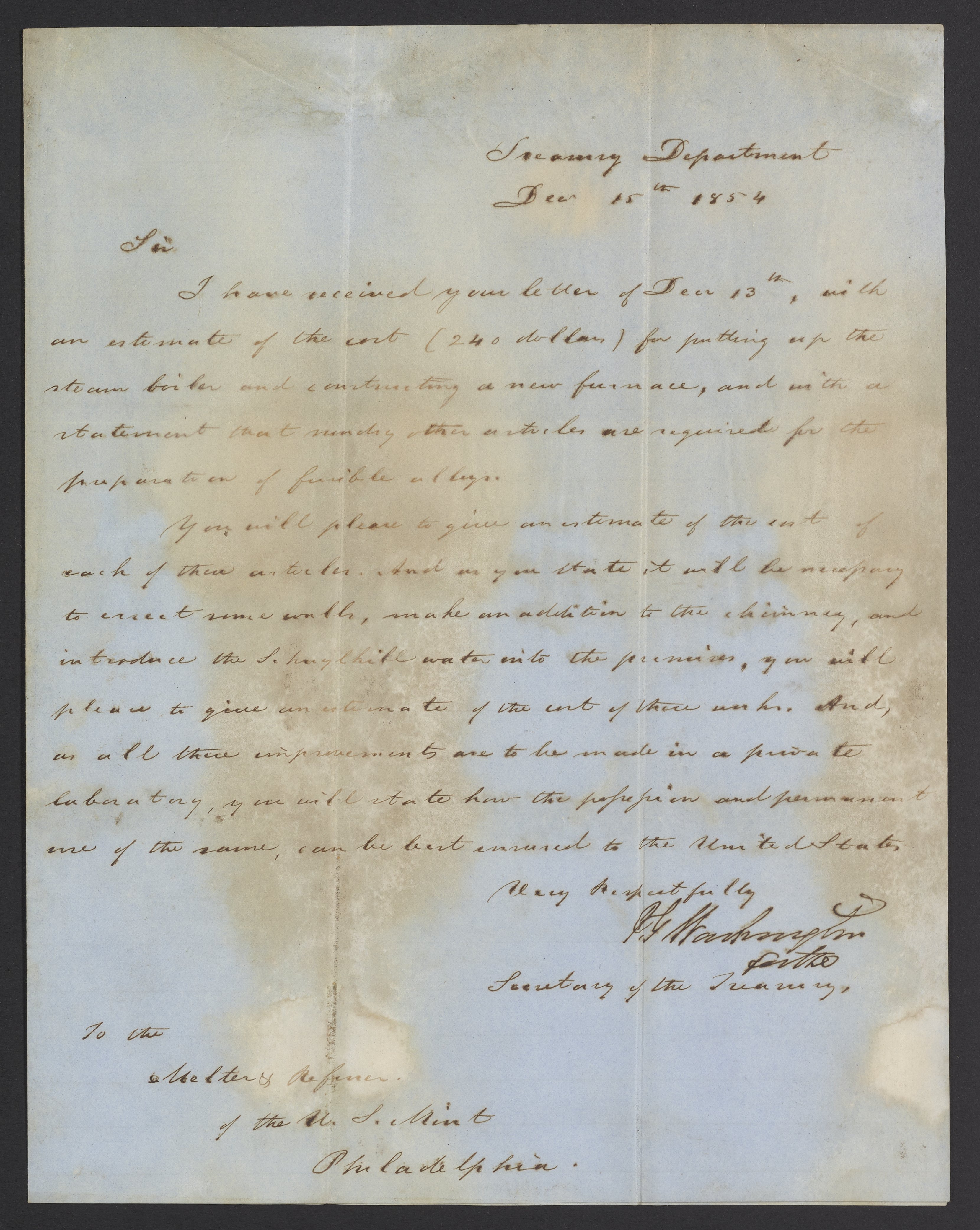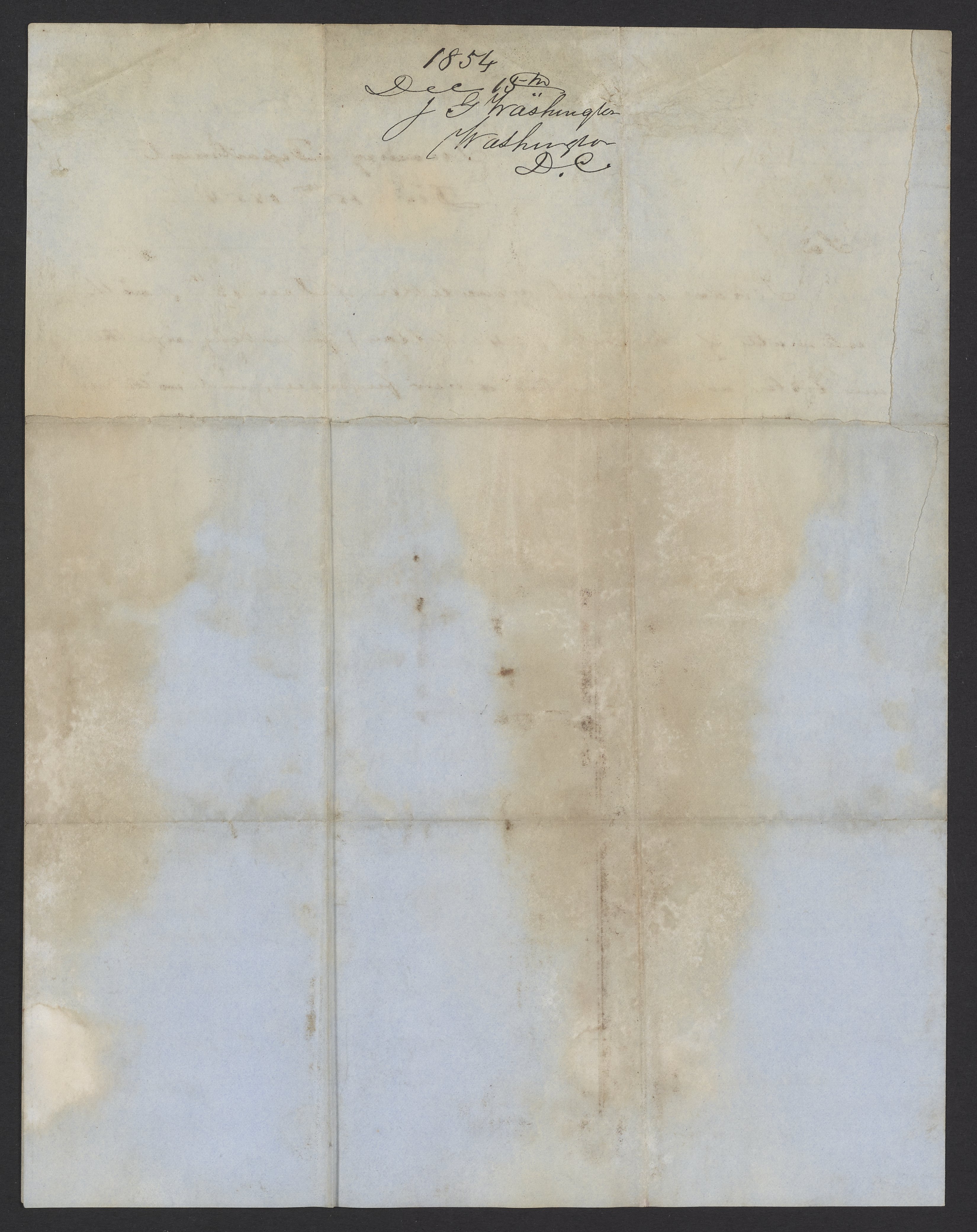 Letter from J. G. Washington to James Curtis Booth, December 15, 1854