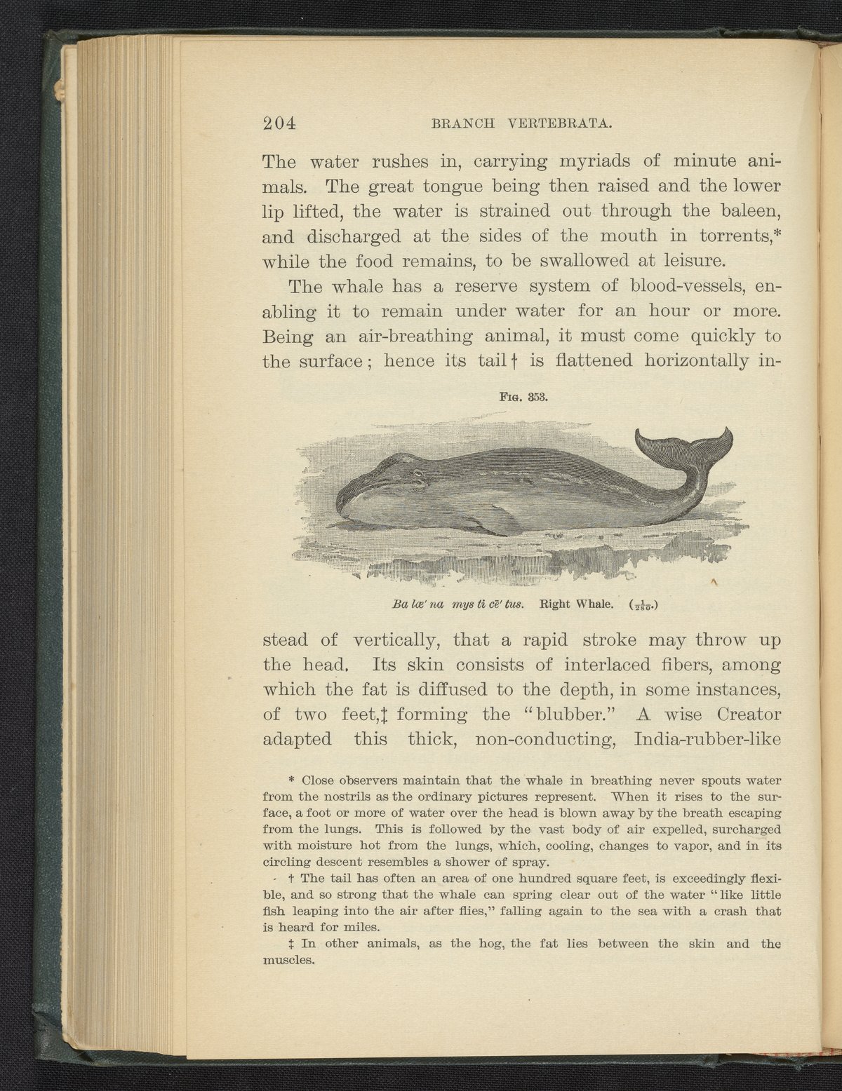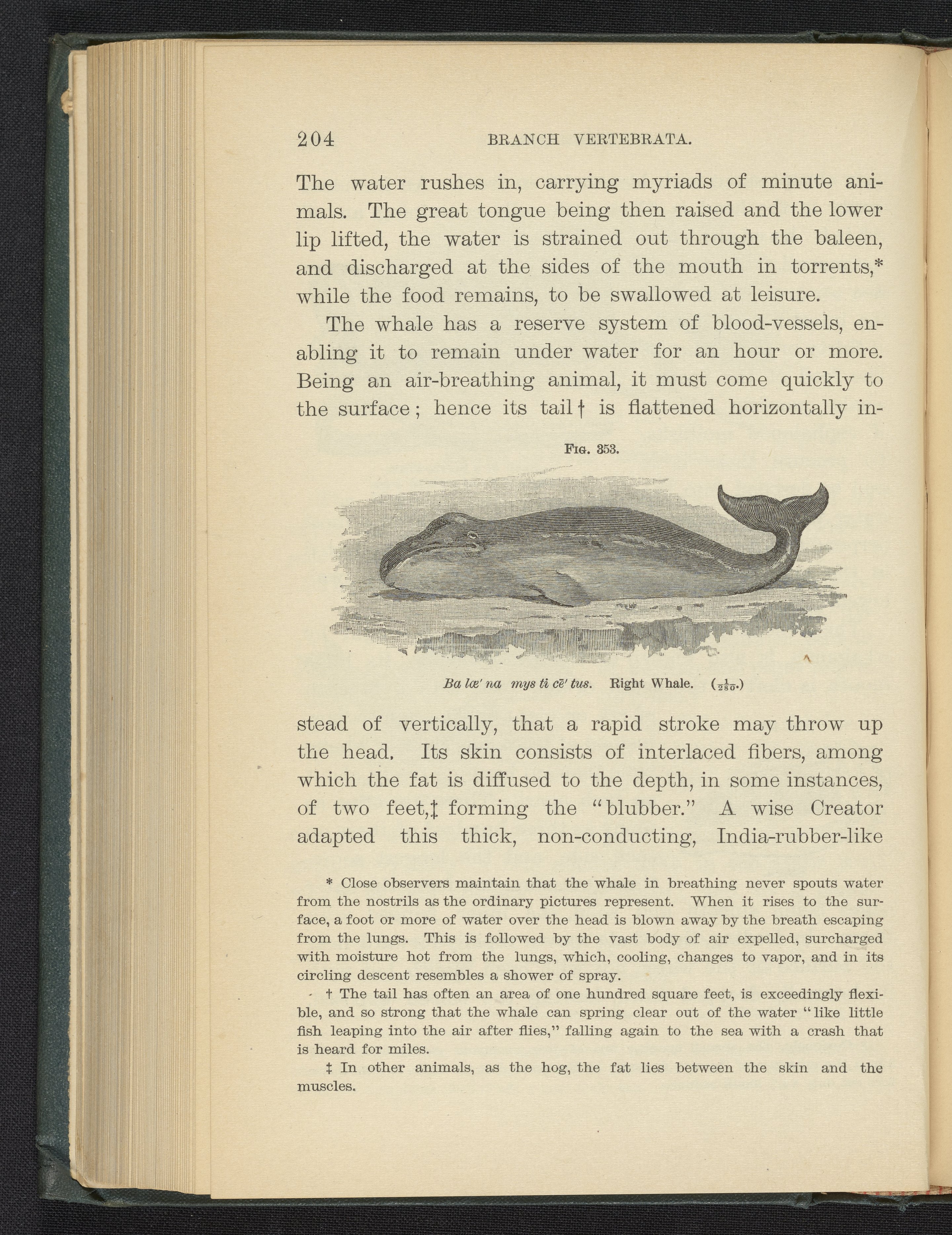 Figure 353 of the 1887 volume Popular Zoology depicting a right whale, also known as a black whale.