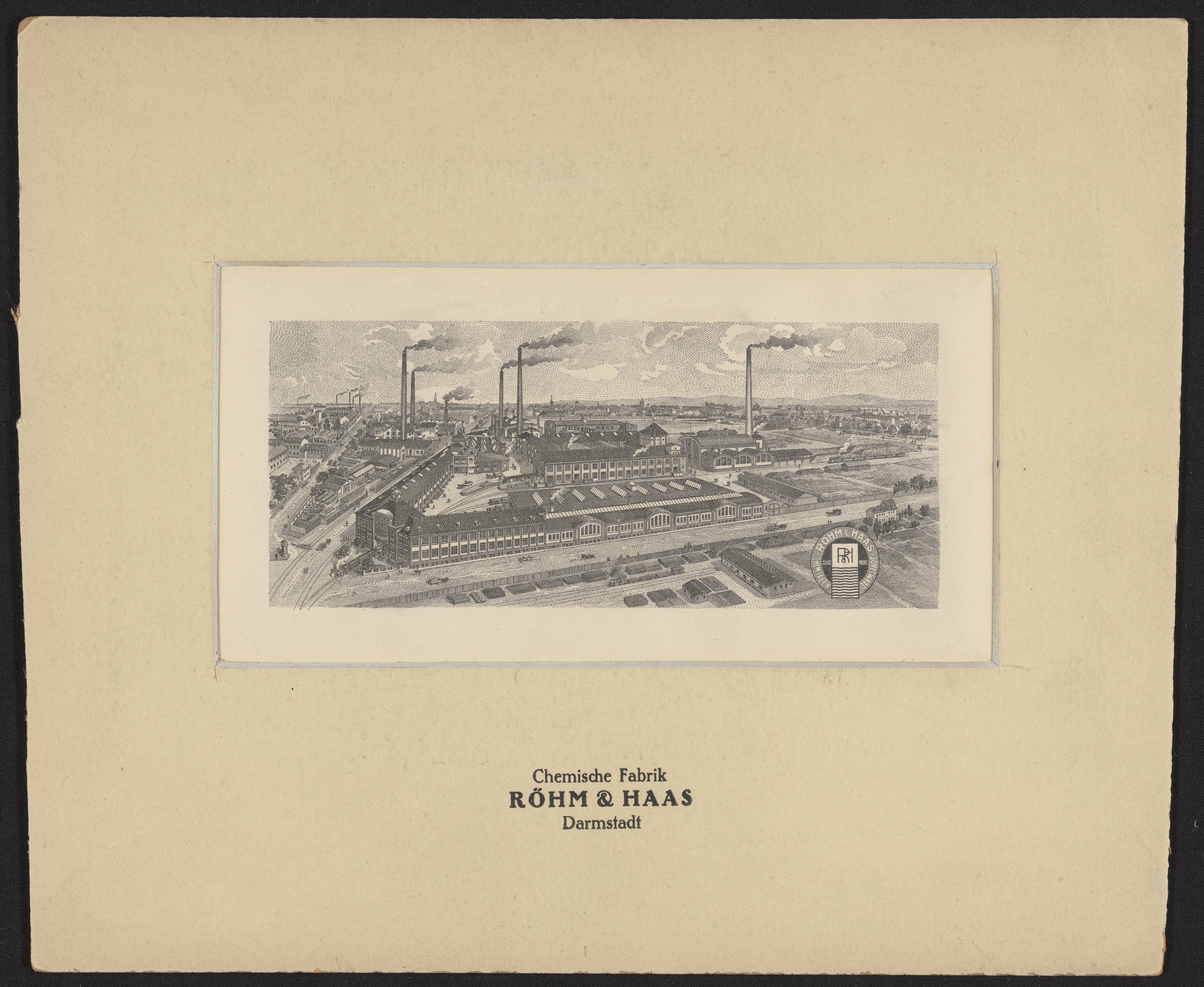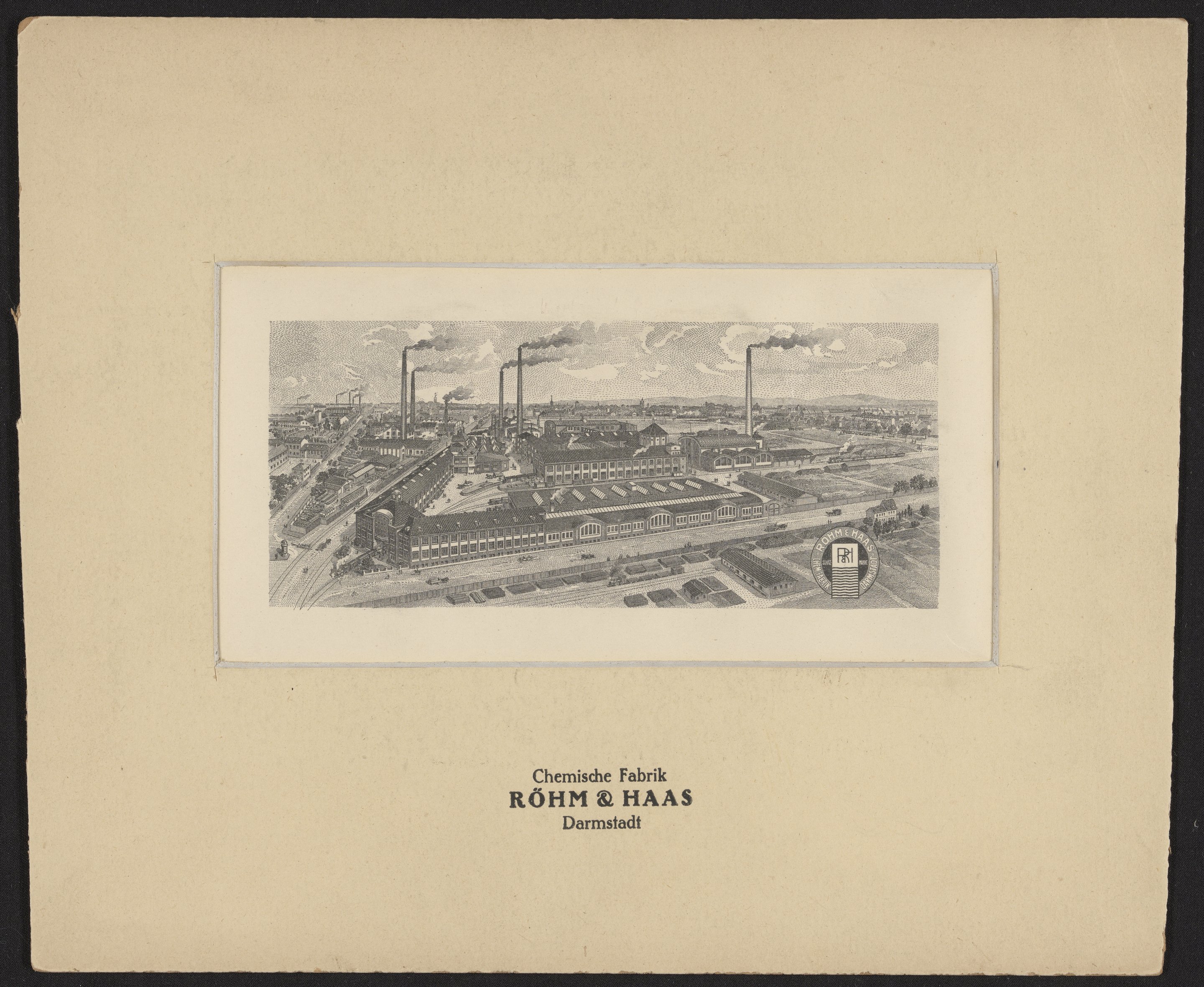 “Rohm & Haas Chemische Fabrik, Darmstadt, Germany,” circa 1919. Rohm & Haas Company Archives, Box 1, Folder 8. Science History Institute. Philadelphia. https://digital.sciencehistory.org/works/lgsb77o.