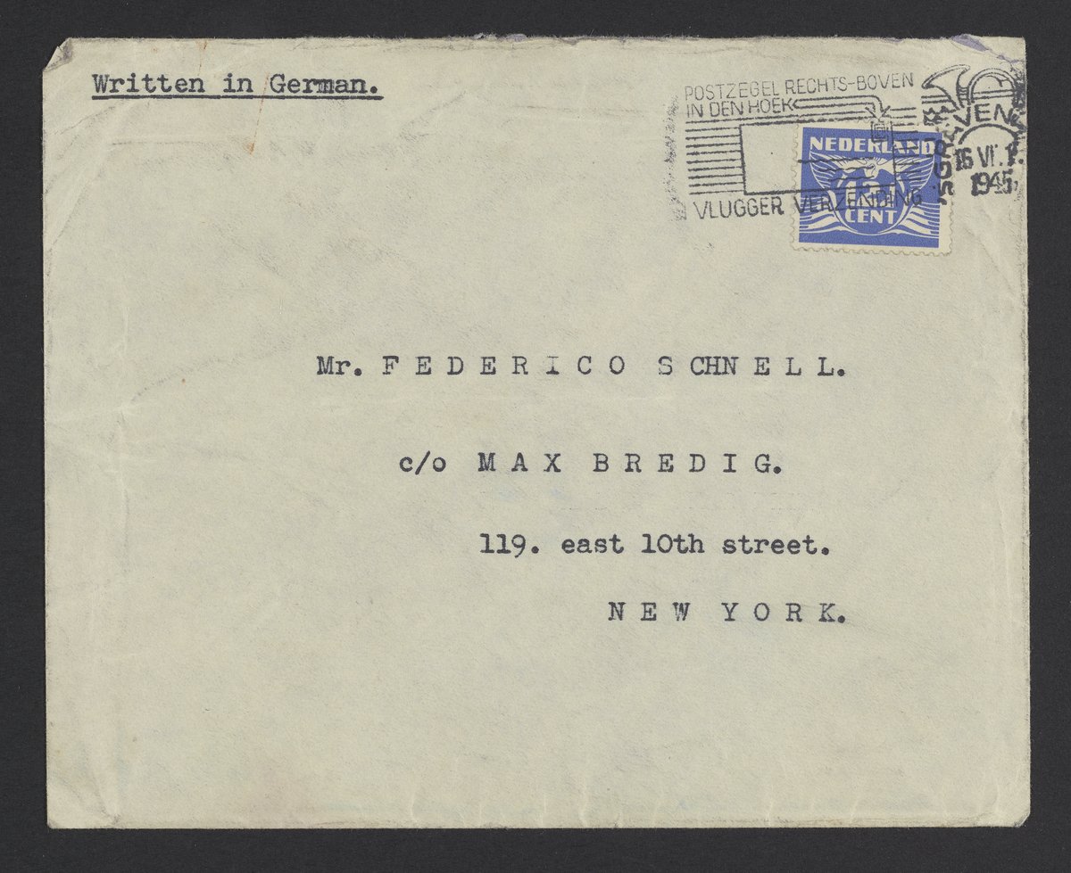 Small JPG1200 x 979px — 175 KBLarge JPG2880 x 2349px — 1.1 MBFull-sized JPG4055 x 3307px — 2.2 MBOriginal fileTIFF — 4055 x 3307px — 38.4 MBAnny van der Sluys informs Max Bredig (1902-1977) of the tragic death of his friends, Alfred and Eva Schnell, in the Netherlands.