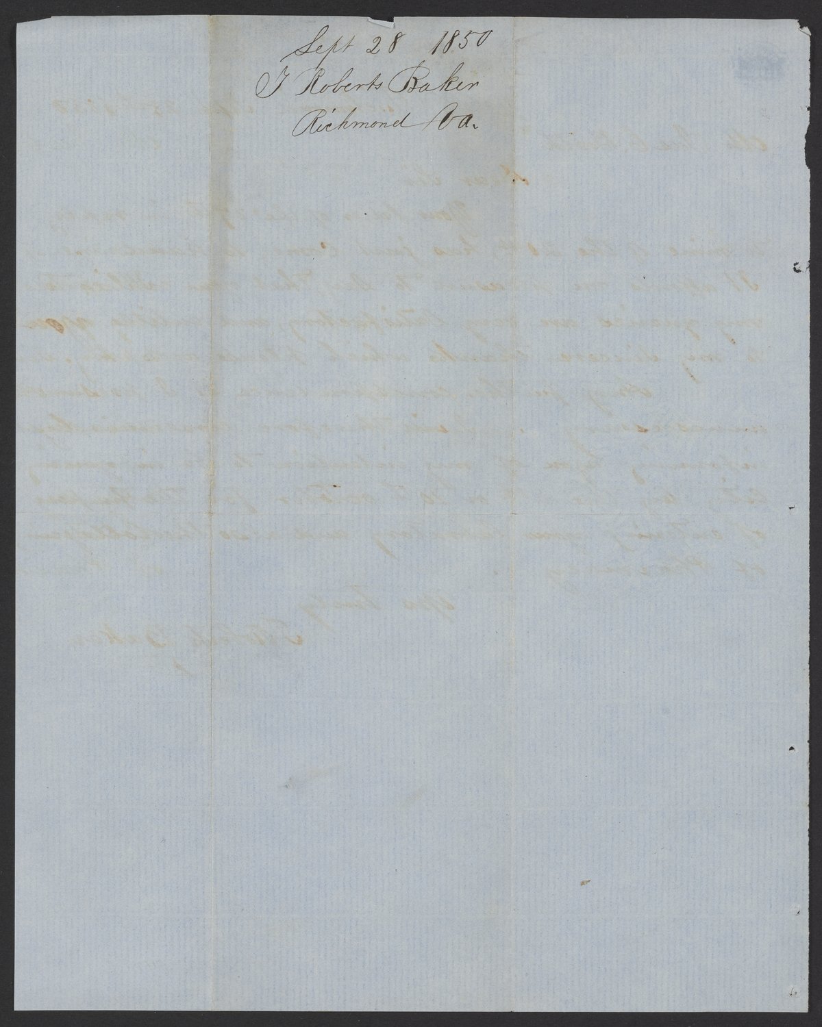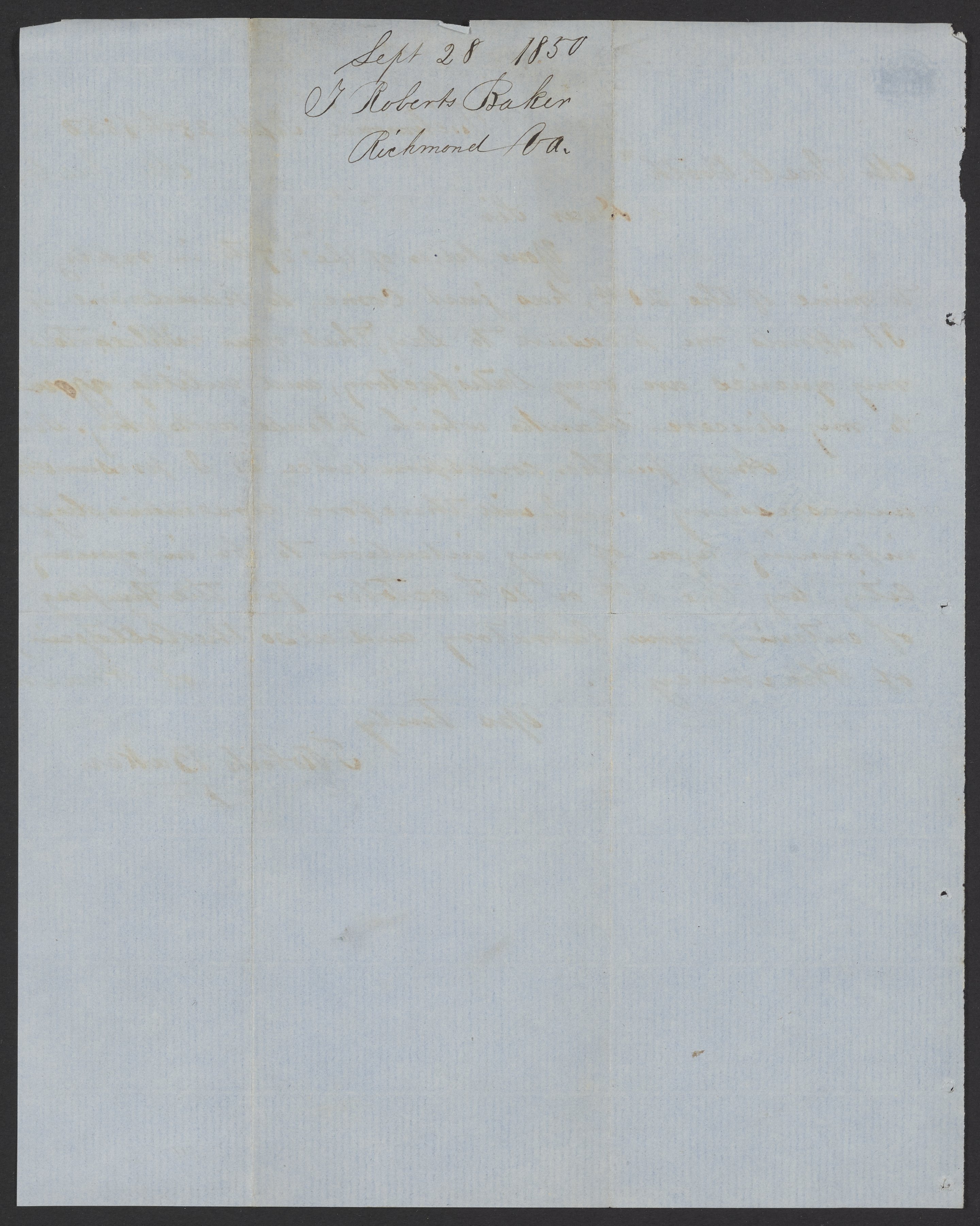Letter from T. Roberts Baker to James Curtis Booth, September 28, 1850