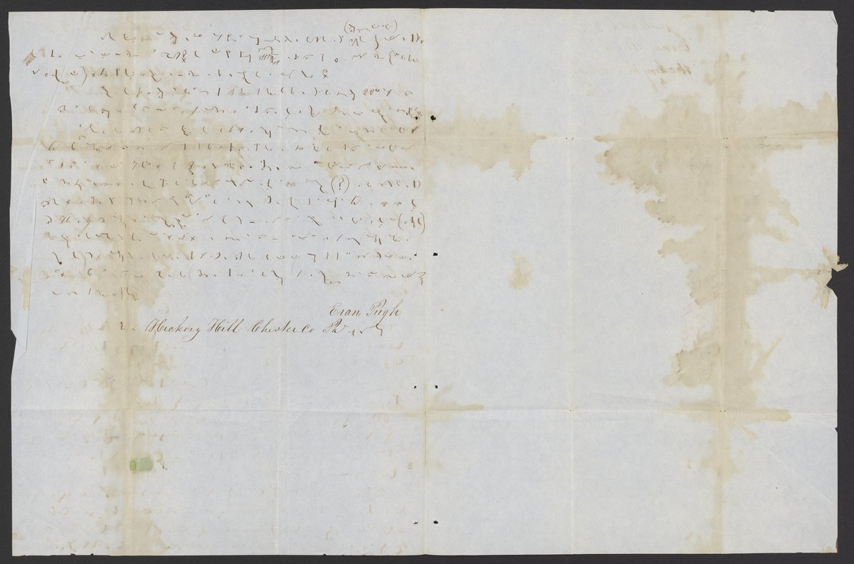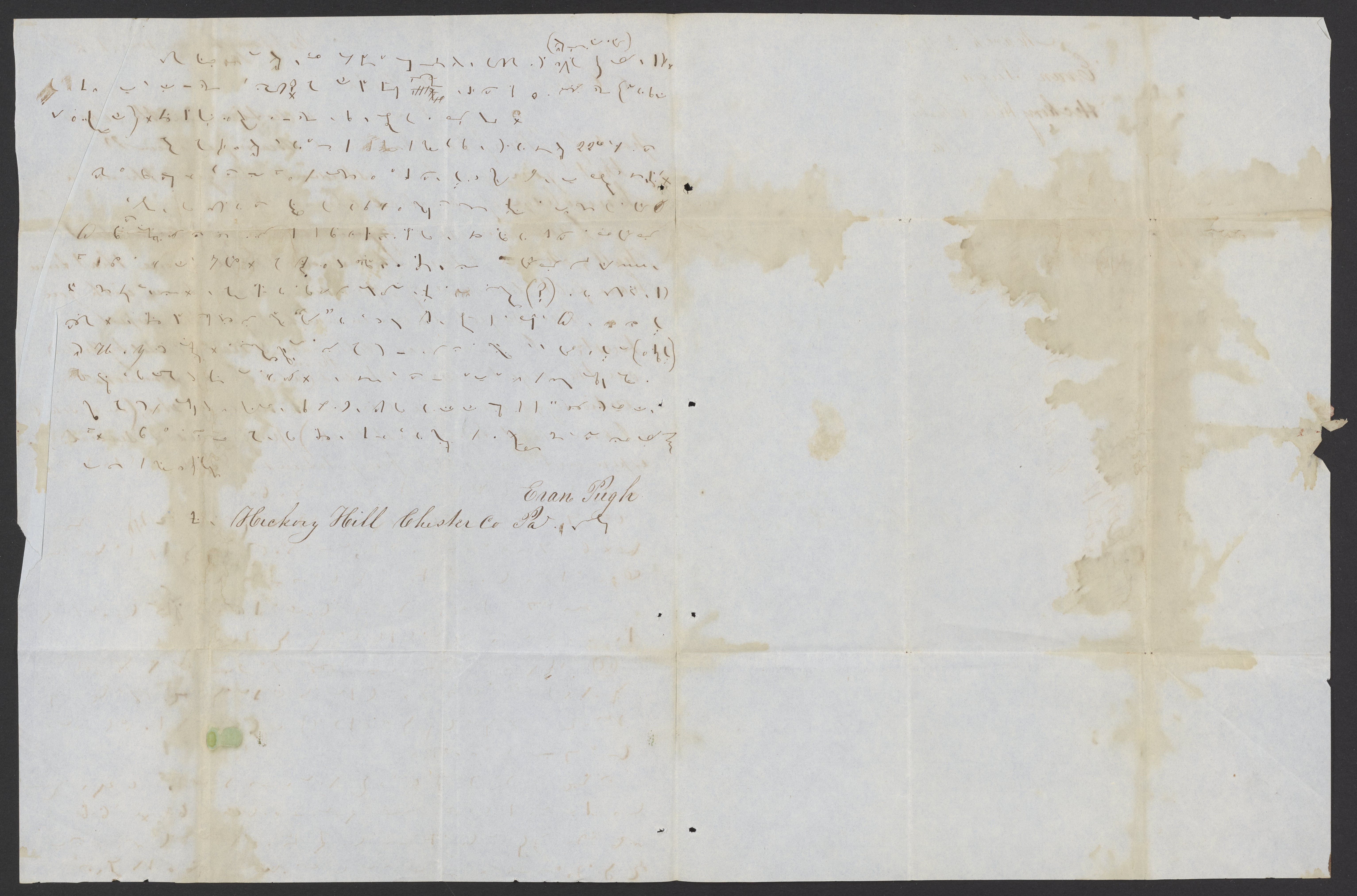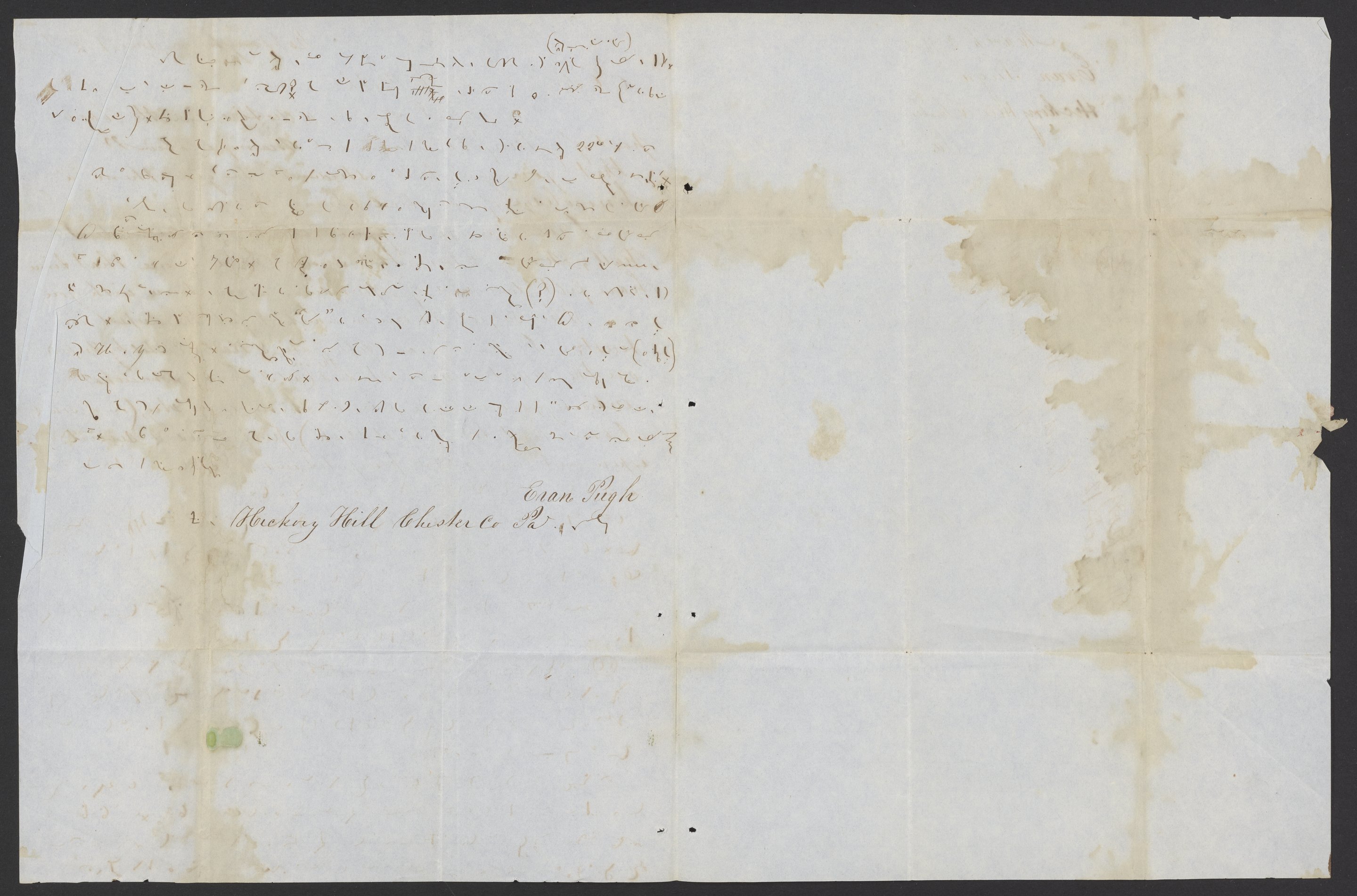Small JPG1200 x 1536px — 281 KBLarge JPG2880 x 3687px — 1.4 MBFull-sized JPG3155 x 4039px — 1.6 MBOriginal fileTIFF — 3155 x 4039px — 36.5 MBEvan Pugh (1828-1864) wishes to study with James Curtis Booth (1810-1888). In shorthand, Pugh discusses some experiments in gaseous precipitation that he has carried out. Pugh became the first president of the Pennsylvania State University, serving from 1859 until his death in 1864.