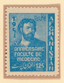 “Afghan Stamp Commemorating Avicenna (Ibn Sina),” 1951. Witco Stamp Collection, Box 1. Science History Institute. Philadelphia. https://digital.sciencehistory.org/works/lxl4hya.