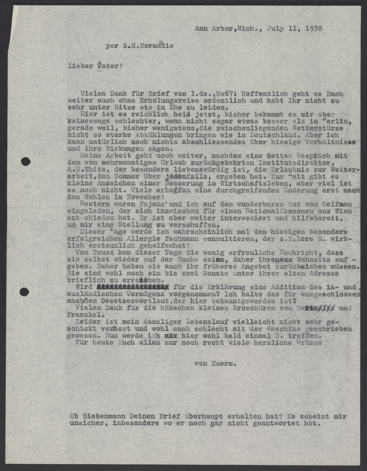 Letter from Max Bredig to Georg Bredig, July 11, 1938