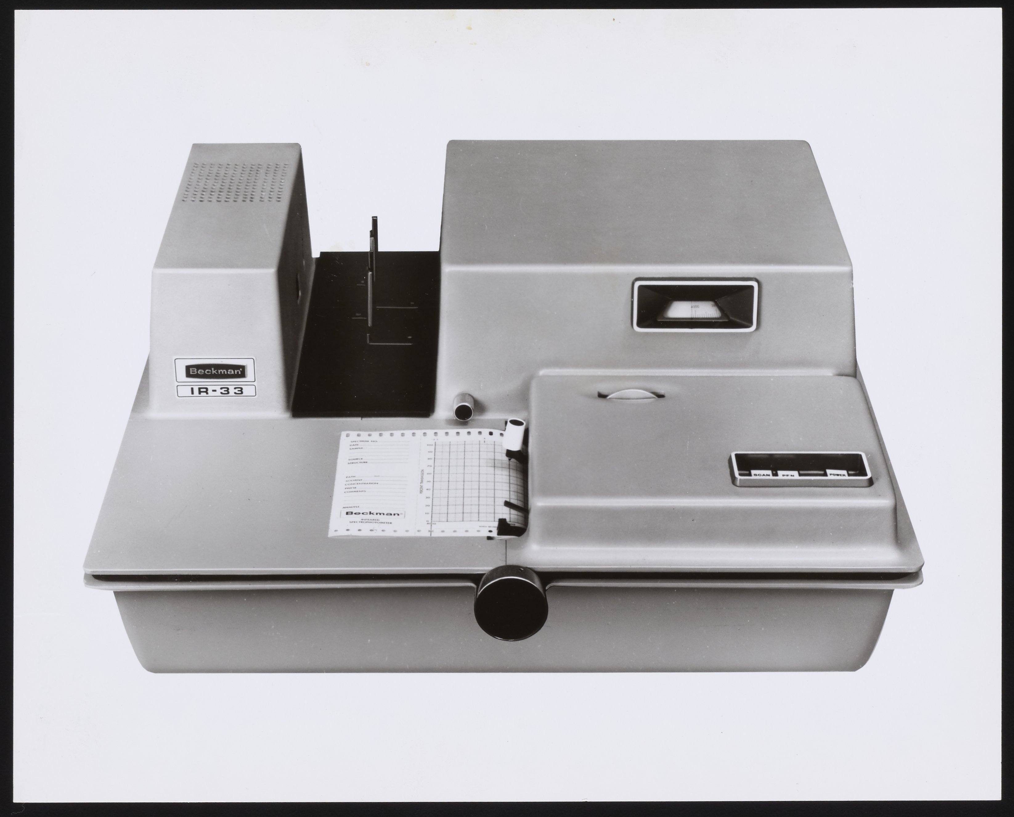 “Beckman Model IR-33 Spectrophotometer,” 1970. Beckman Historical Collection, Box 55, Folder 154. Science History Institute. Philadelphia. https://digital.sciencehistory.org/works/m039k4882.