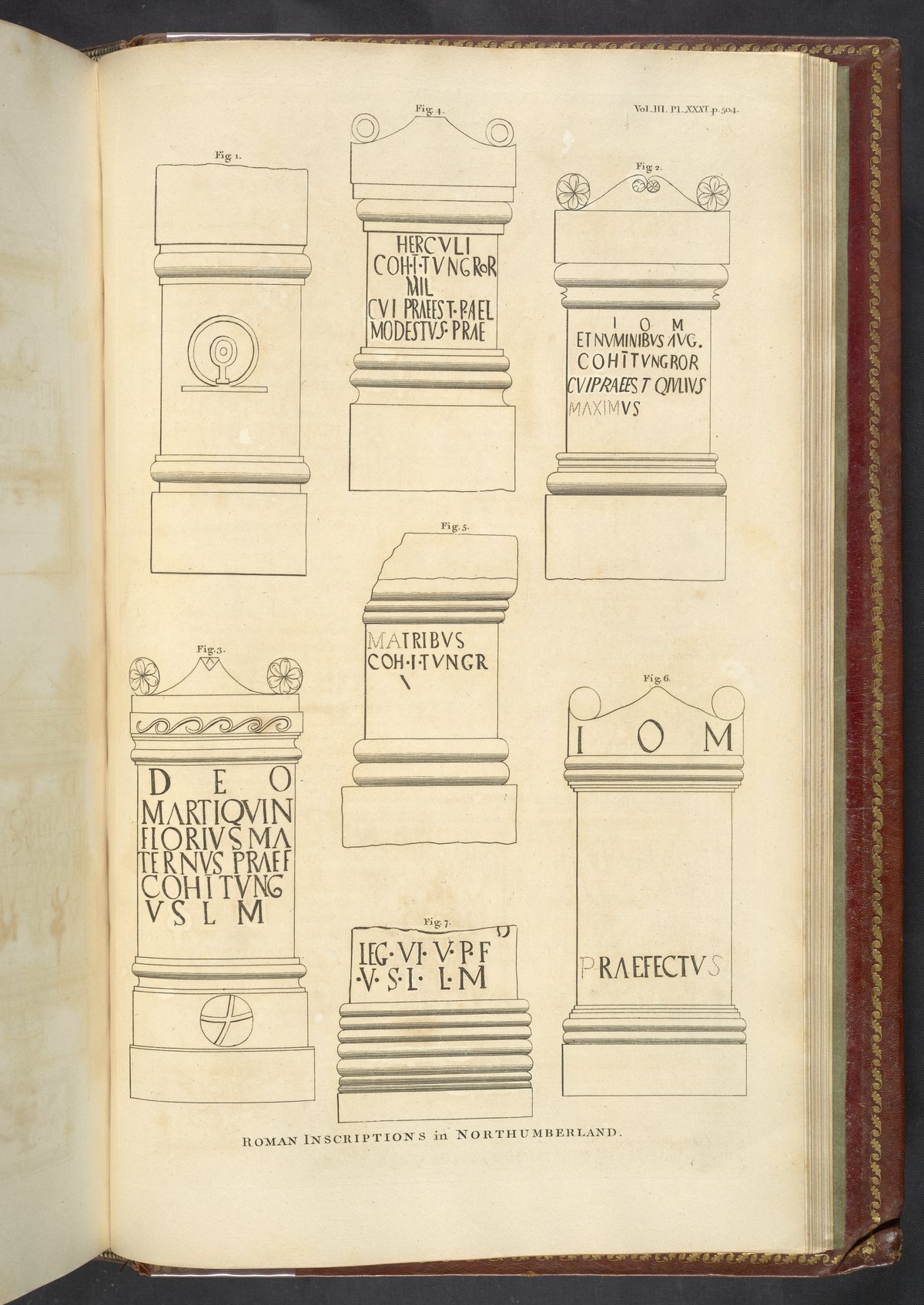 Camden, William. “Roman Inscriptions in Northumberland [Vol. III, Plate XXXI].” In Britannia: or, a Chorographical Description of the Flourishing Kingdoms of England, Scotland, and Ireland, and the Islands Adjacent, Vol. 3. London, England: John Stockdale, 1806. https://digital.sciencehistory.org/works/m2i63ud.