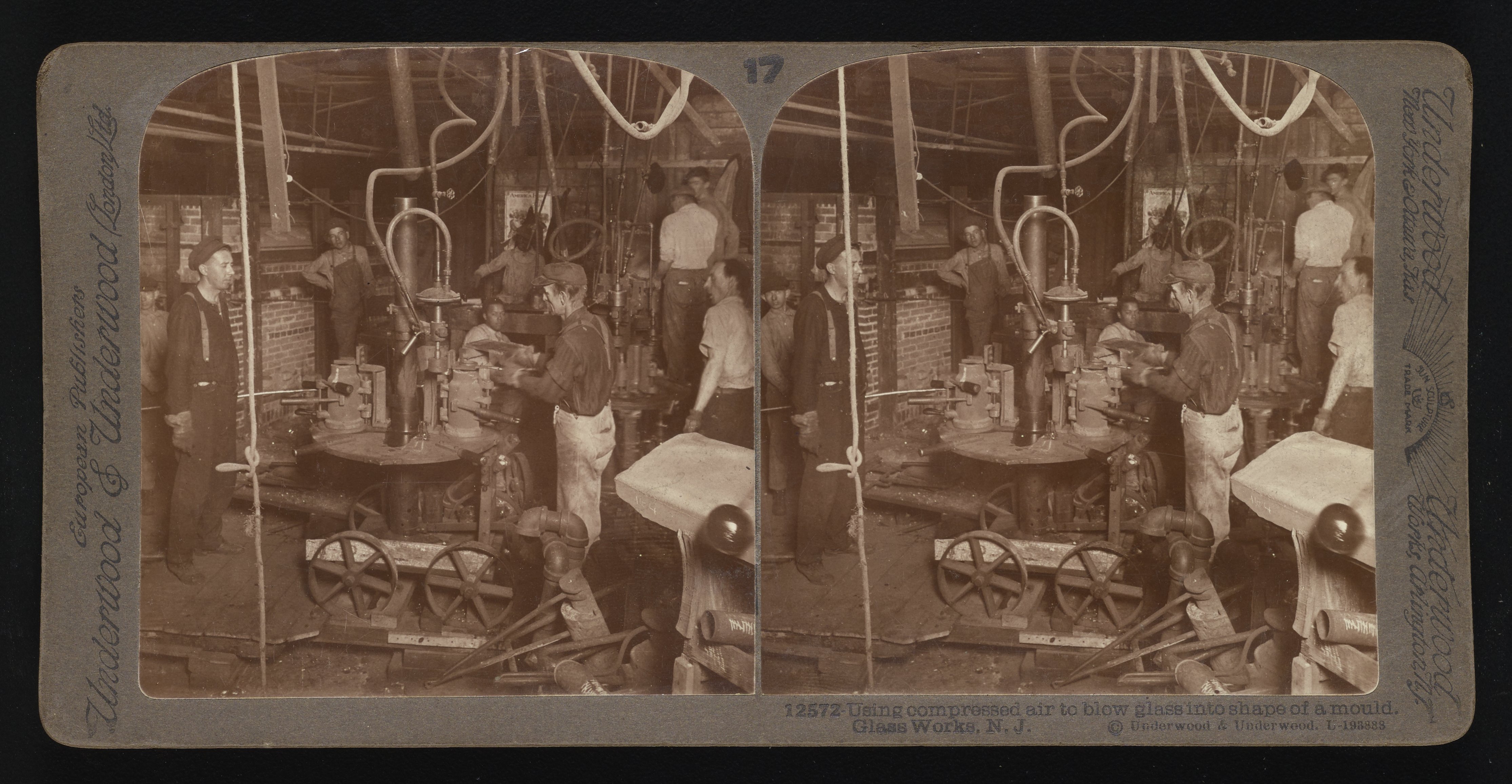 Using compressed air to blow glass into shape of a mould