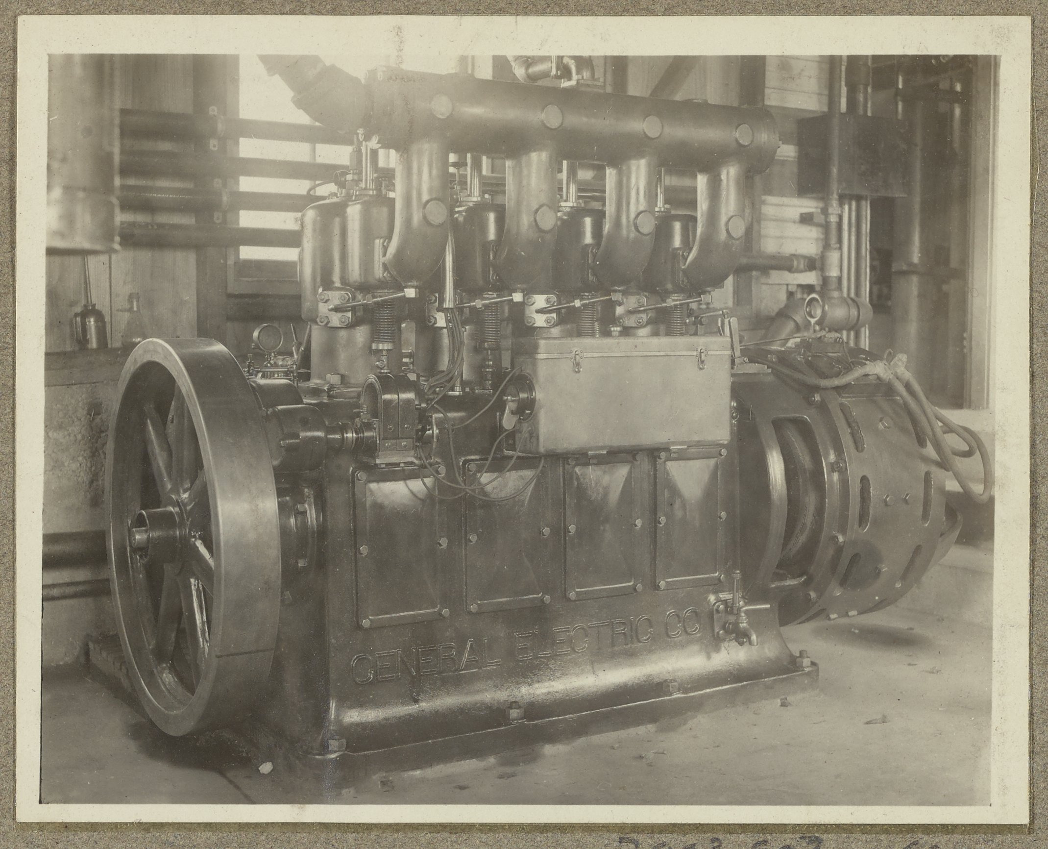 “Auxiliary Gasoline Engine at Catalyst Testing Plant,” circa 1928. Travis P. Hignett Collection of Fixed Nitrogen Research Laboratory Photographs, Box 1. Science History Institute. Philadelphia. https://digital.sciencehistory.org/works/m326m179b.