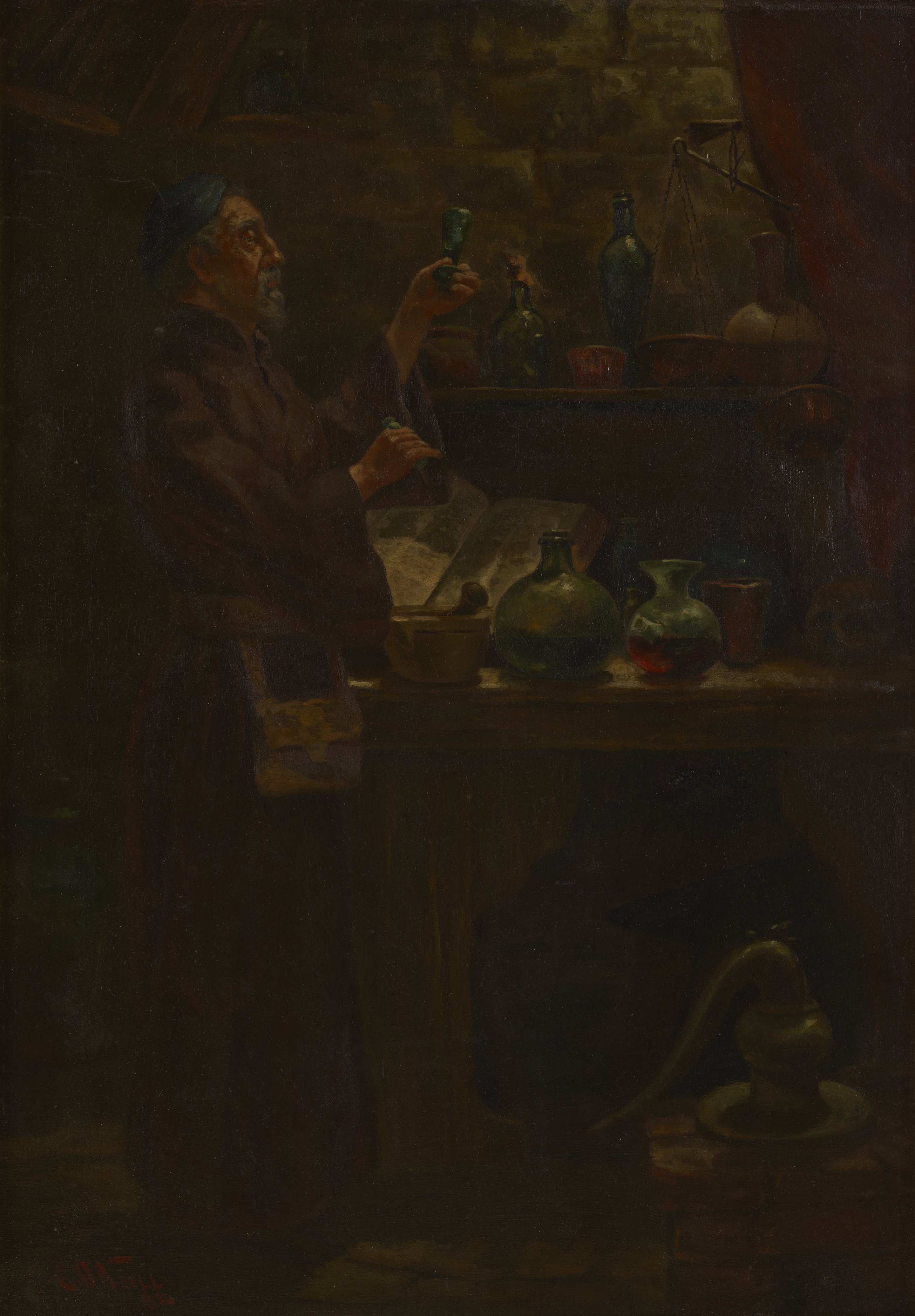 O'Neill, Charles. The Alchemist. Oil paint (paint), canvas (textile material), 1884. Science History Institute. Philadelphia. https://digital.sciencehistory.org/works/m326m229b.