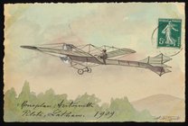 Molynk, A. “Biplan Farman.” Watercolor (paint), 1909. Donald F. Othmer Papers, Box 287. Science History Institute. Philadelphia. https://digital.sciencehistory.org/works/m613mz47b.