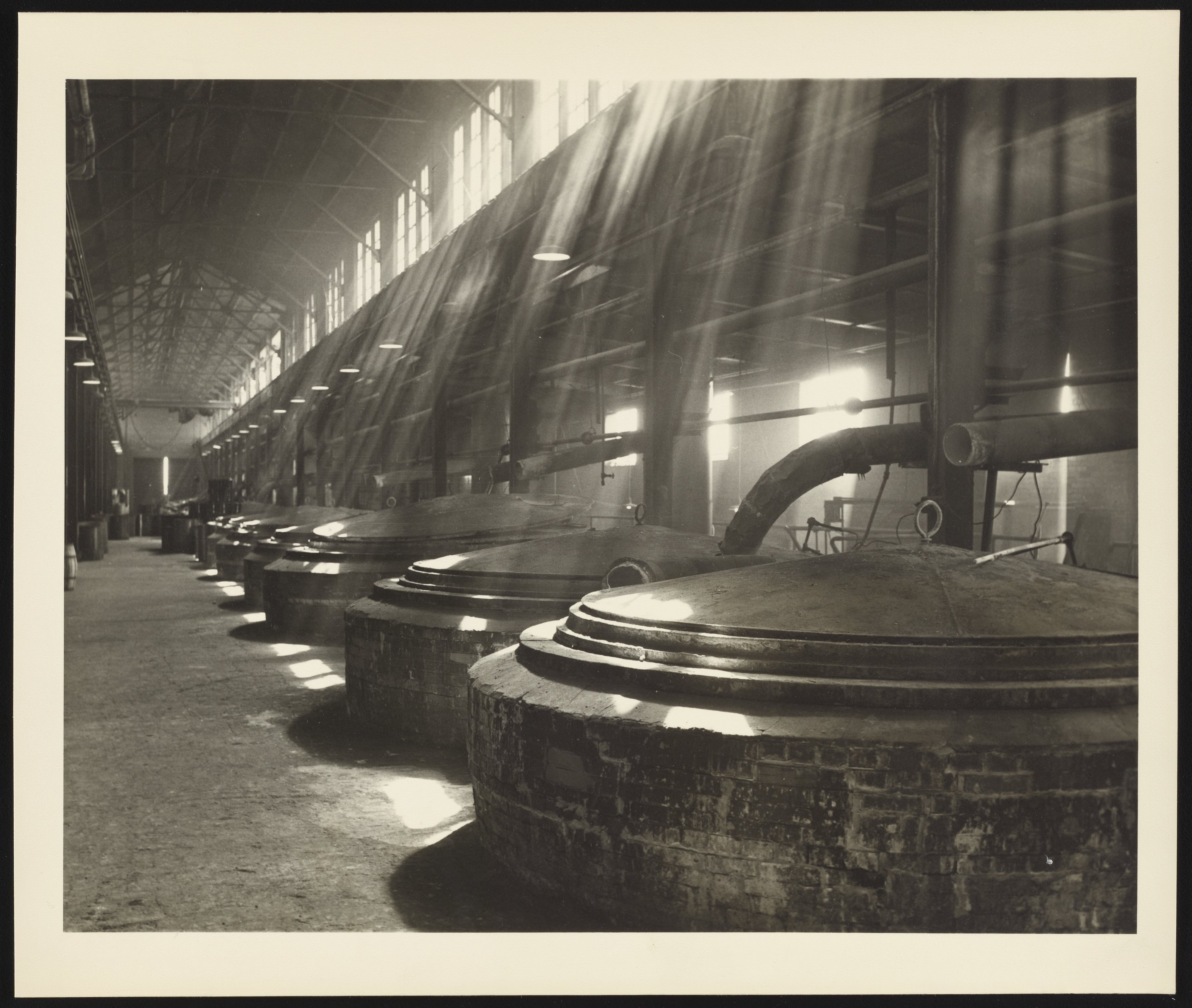 Dow Chemical Company. “Caustic Pot House at Dow Chemical Company Plant,” 1950–1959. Dow Chemical Company Historical Image Collection, Box Oversized Plants 2. Science History Institute. Philadelphia. https://digital.sciencehistory.org/works/m900nt862.