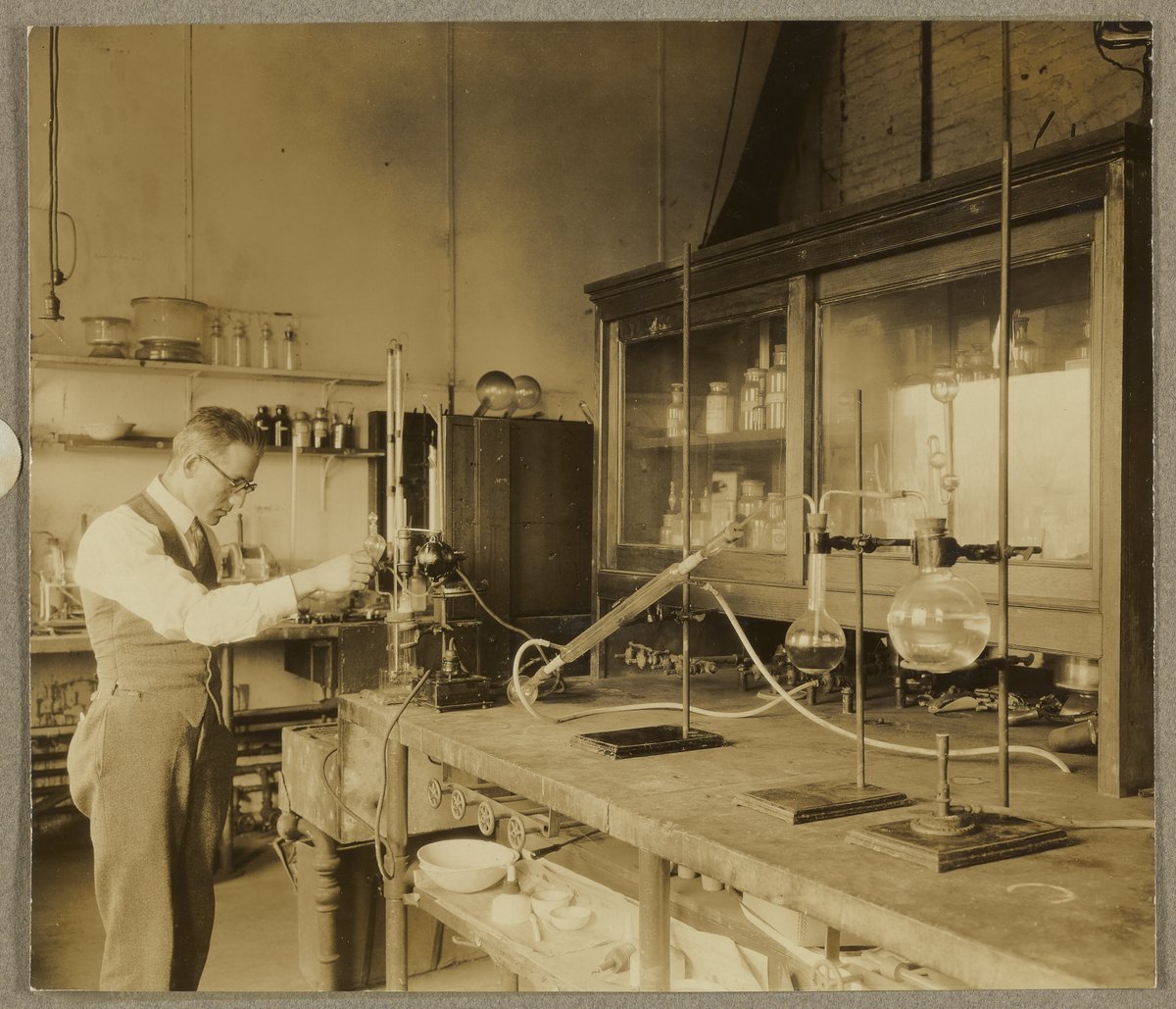 The Fixed Nitrogen Research Laboratory (F.N.R.L.) was established at American University in 1919 under the directorship of Arthur B. Lamb. Initially part of the War Department, the F.N.R.L. was the successor to several wartime initiatives to develop a secure domestic supply of nitrate compounds necessary for the manufacture of explosives during World War I. With a staff of about 110 individuals, including 35 to 50 chemists, the F.N.R.L. focused on the manufacture, production, and development of products of atmospheric nitrogen, including munitions and fertilizers.