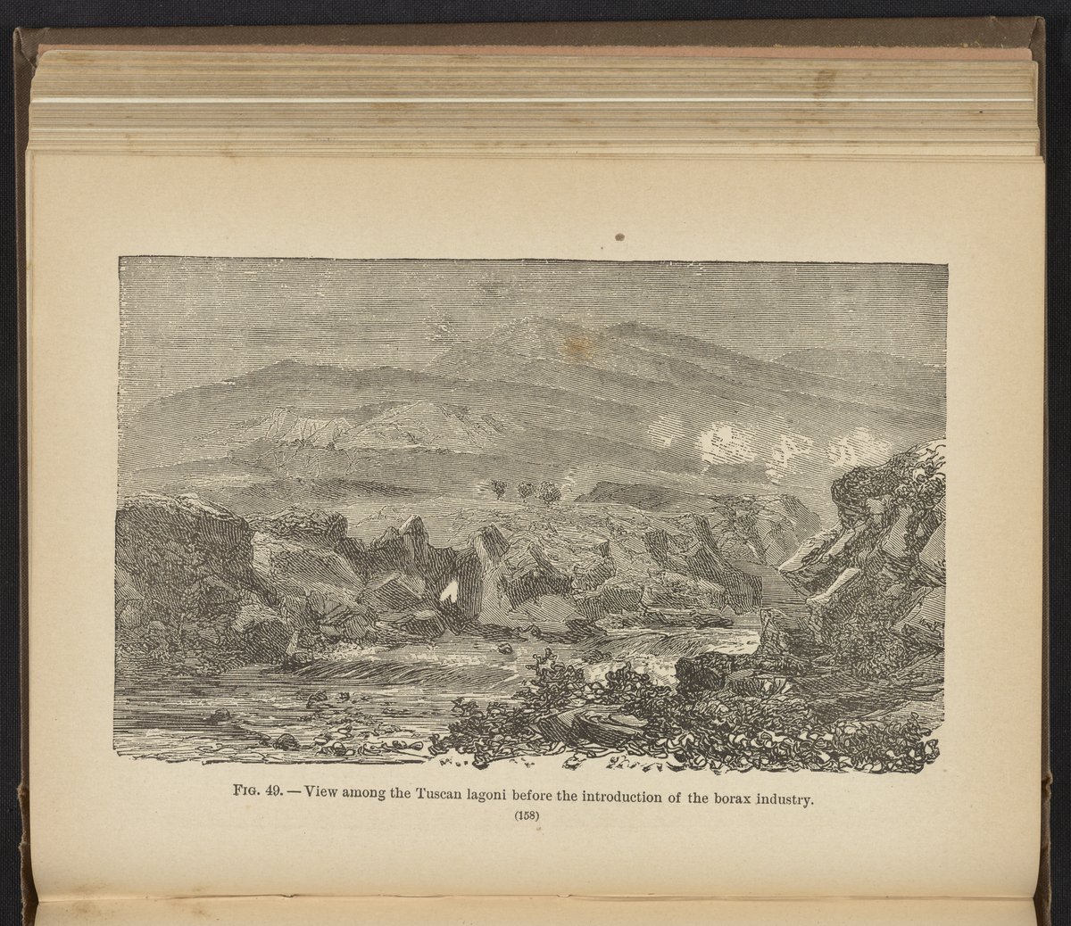 Appleton, John Howard. “Figure 49: View of the Tuscan Landscape before the Introduction of the Borax Industry.” Chemistry, Developed by Facts and Principles Drawn Chiefly from the Non-Metals. Providence, Rhode Island: Providence Lithograph Company, 1884. Science History Institute. Philadelphia. https://digital.sciencehistory.org/works/mfo6adw.