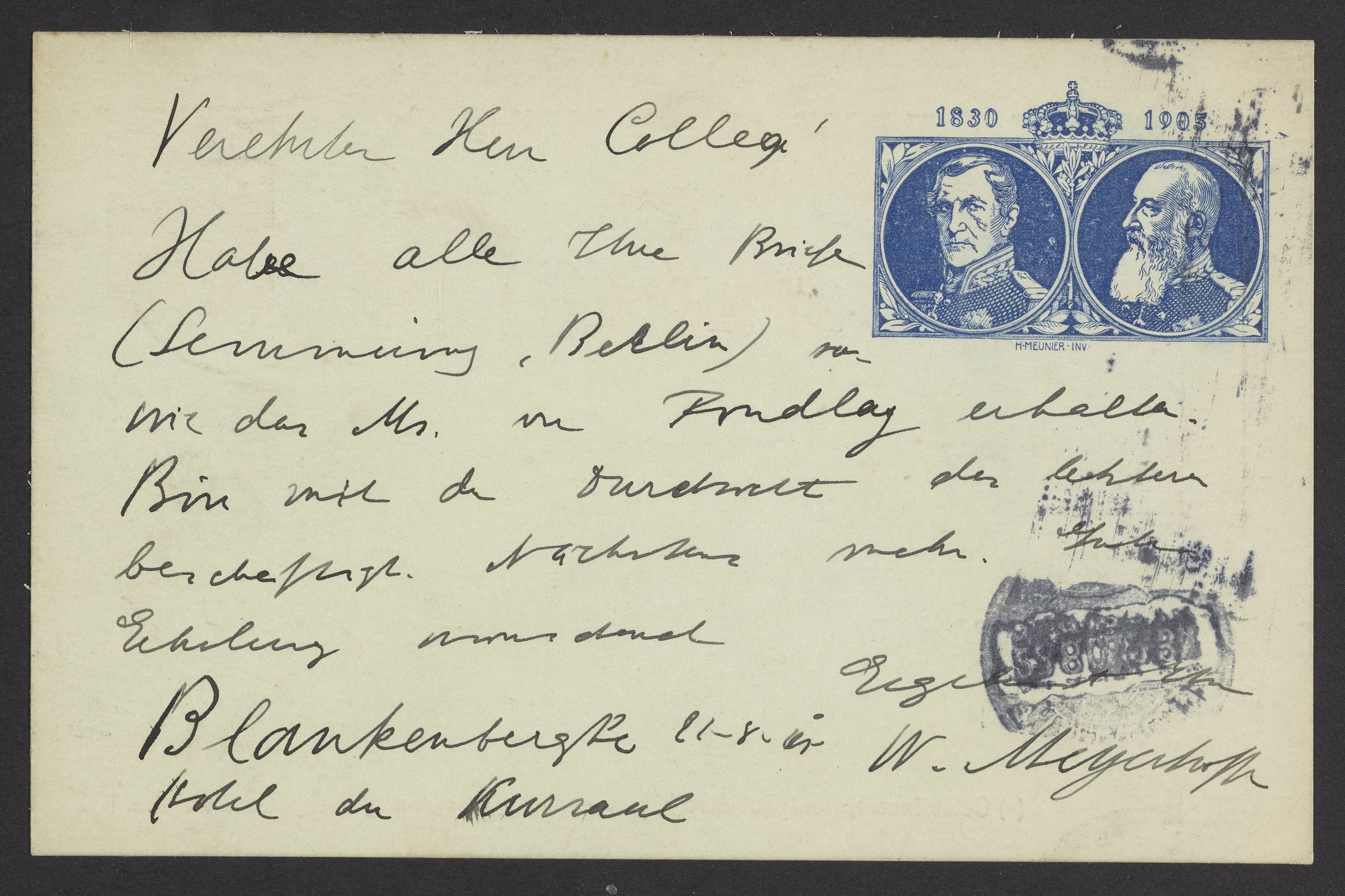 Postcard from Wilhelm Meyerhoffer to Georg Bredig, August 1905