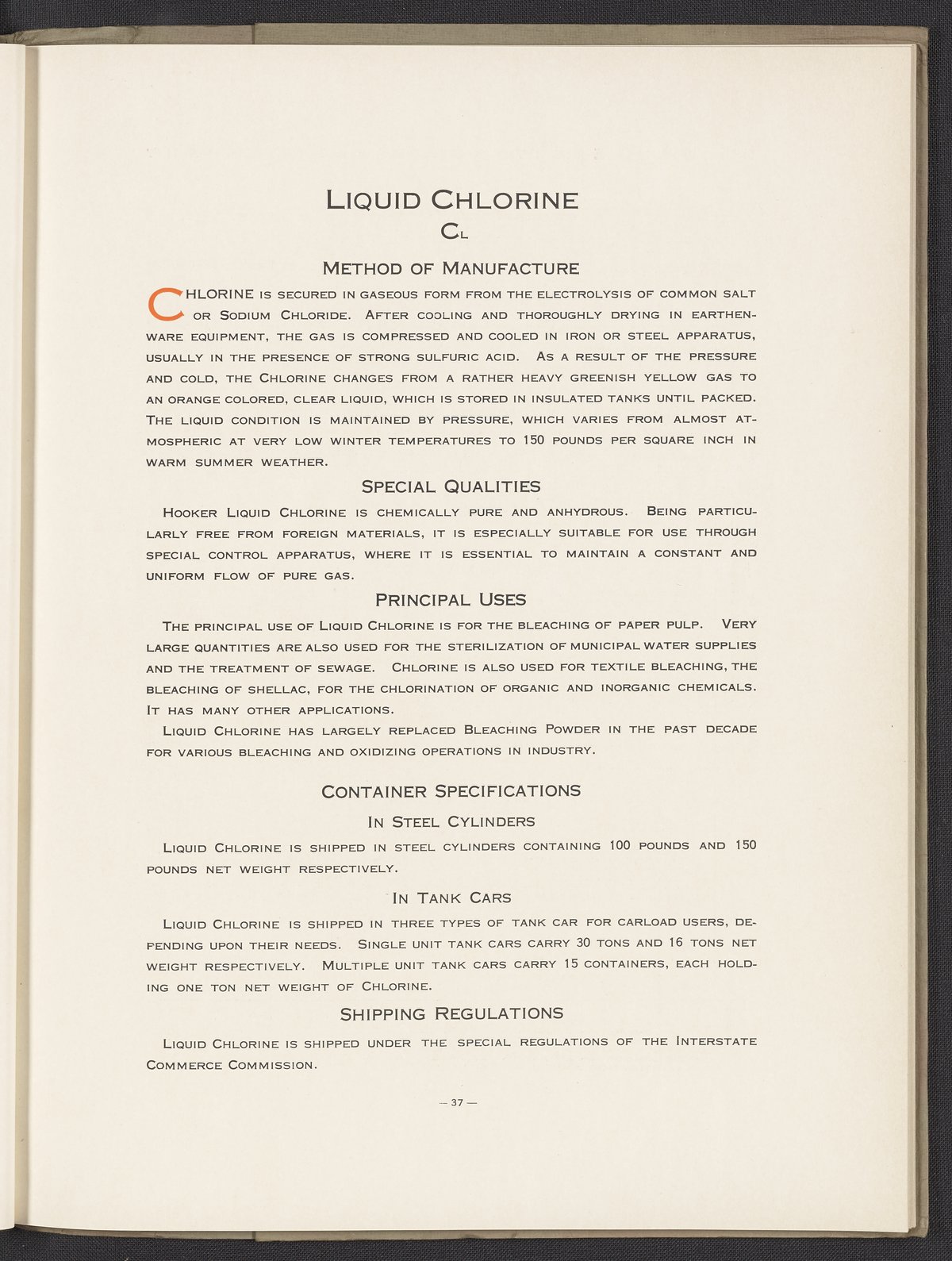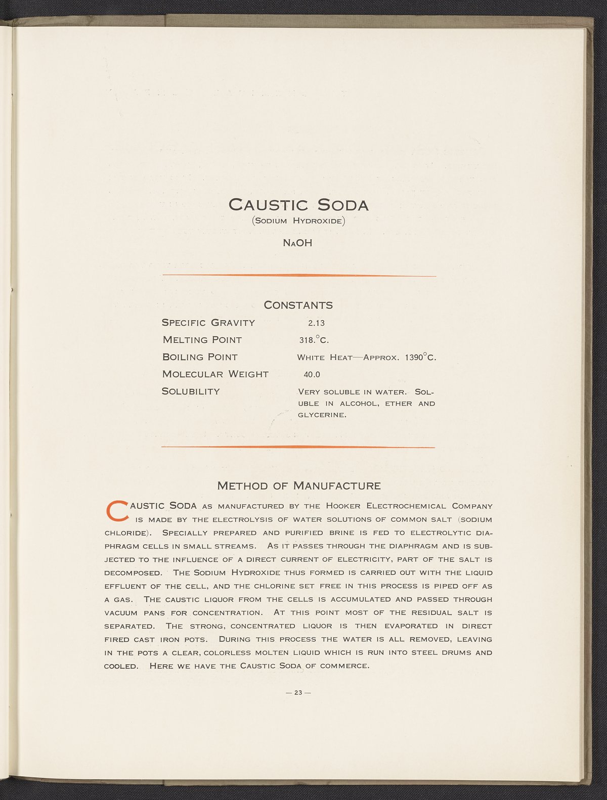 Small JPG1200 x 1523px — 374 KBLarge JPG2880 x 3656px — 2.1 MBFull-sized JPG3704 x 4702px — 3.4 MBOriginal fileTIFF — 3704 x 4702px — 49.9 MBPublication providing a thorough corporate history of the Hooker Electrochemical Company, an American chemical company that produced chloralkali products from 1903 until 1968 when it was acquired by Occidental Petroleum. Between 1943 and 1953, Hooker disposed of chemical waste from its Niagara Falls plant in Love Canal, New York, leading to a harmful environmental disaster in the 1970s. This work includes chapters detailing the manufacture, use, and physical characteristics of the company's products including Caustic Soda, Chlorine, and Benzoic Acid. Work is thoroughly illustrated and digitized in its entirety.