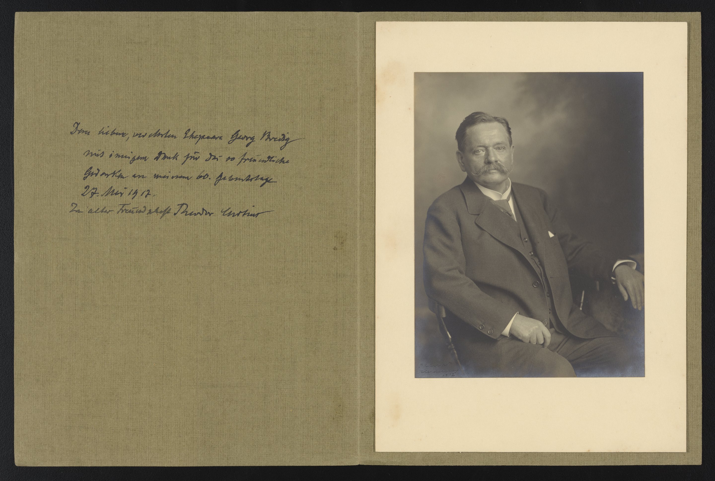 Thank you card and portrait from Theodor Curtius to Georg and Rosa Bredig, May 1917