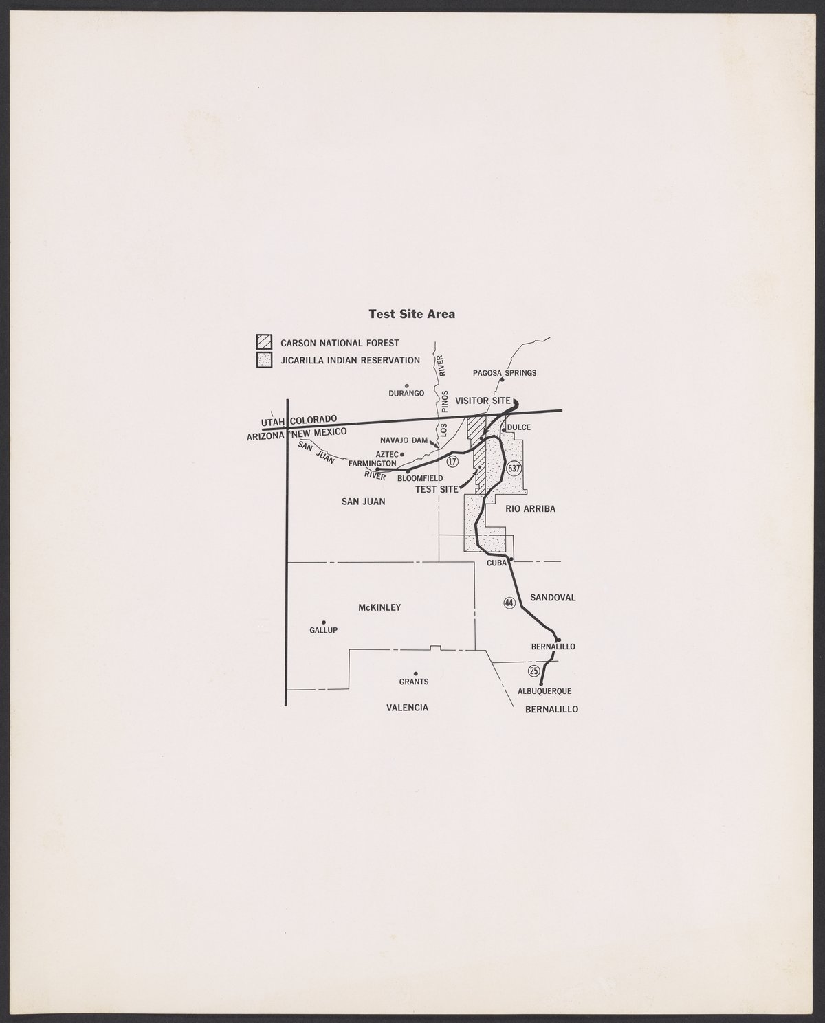 Map of the Project Gasbuggy test site area, located in New Mexico, and environs.