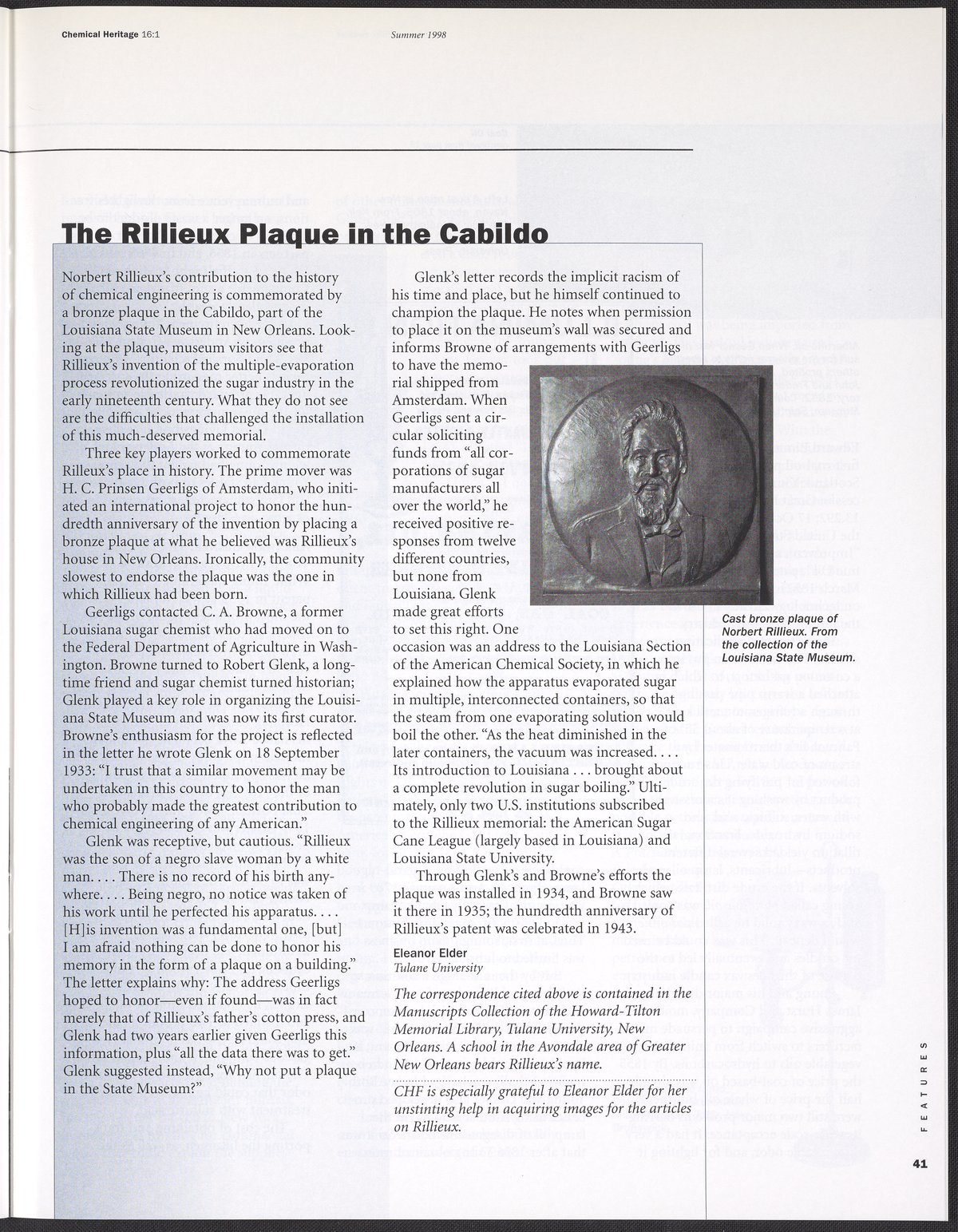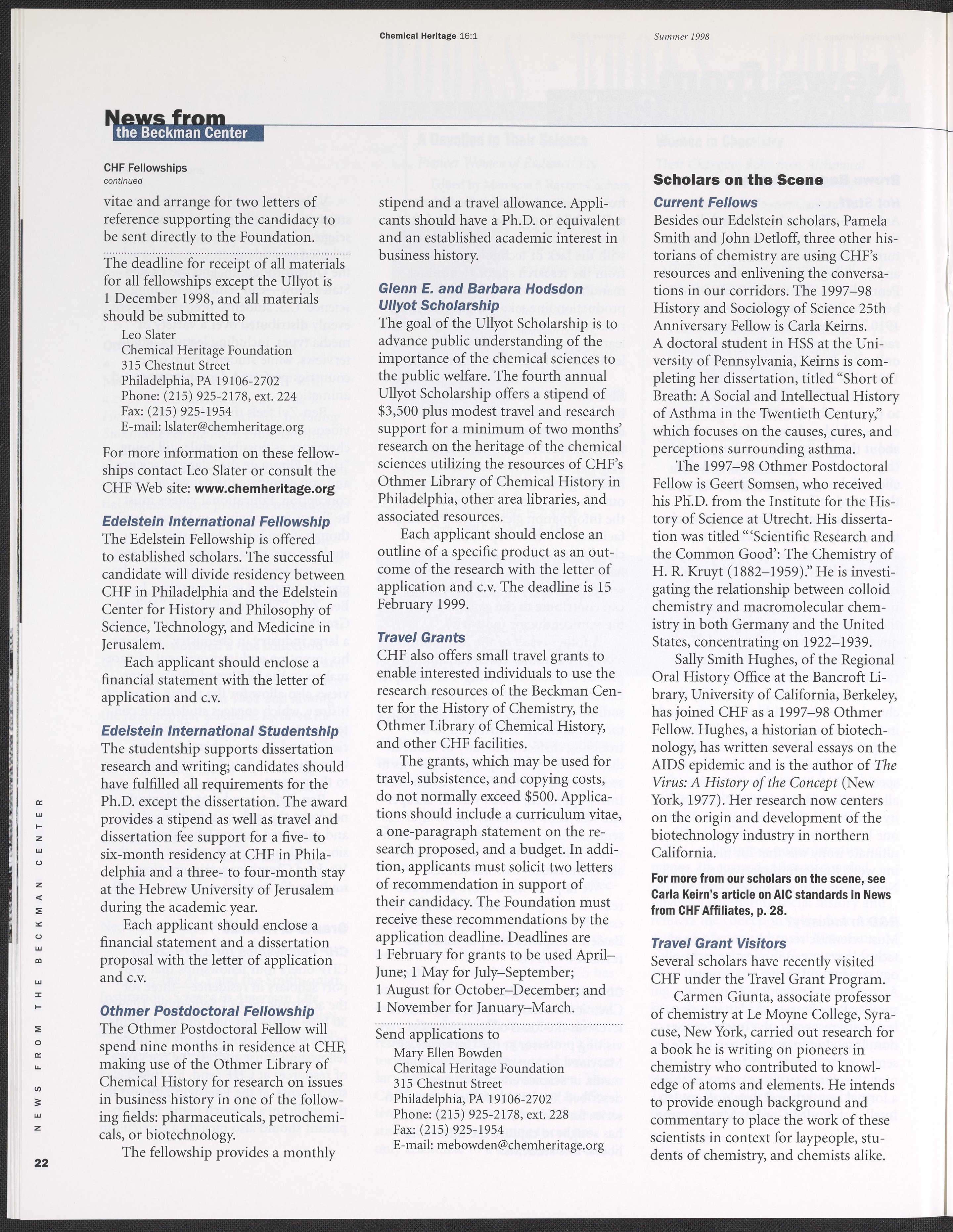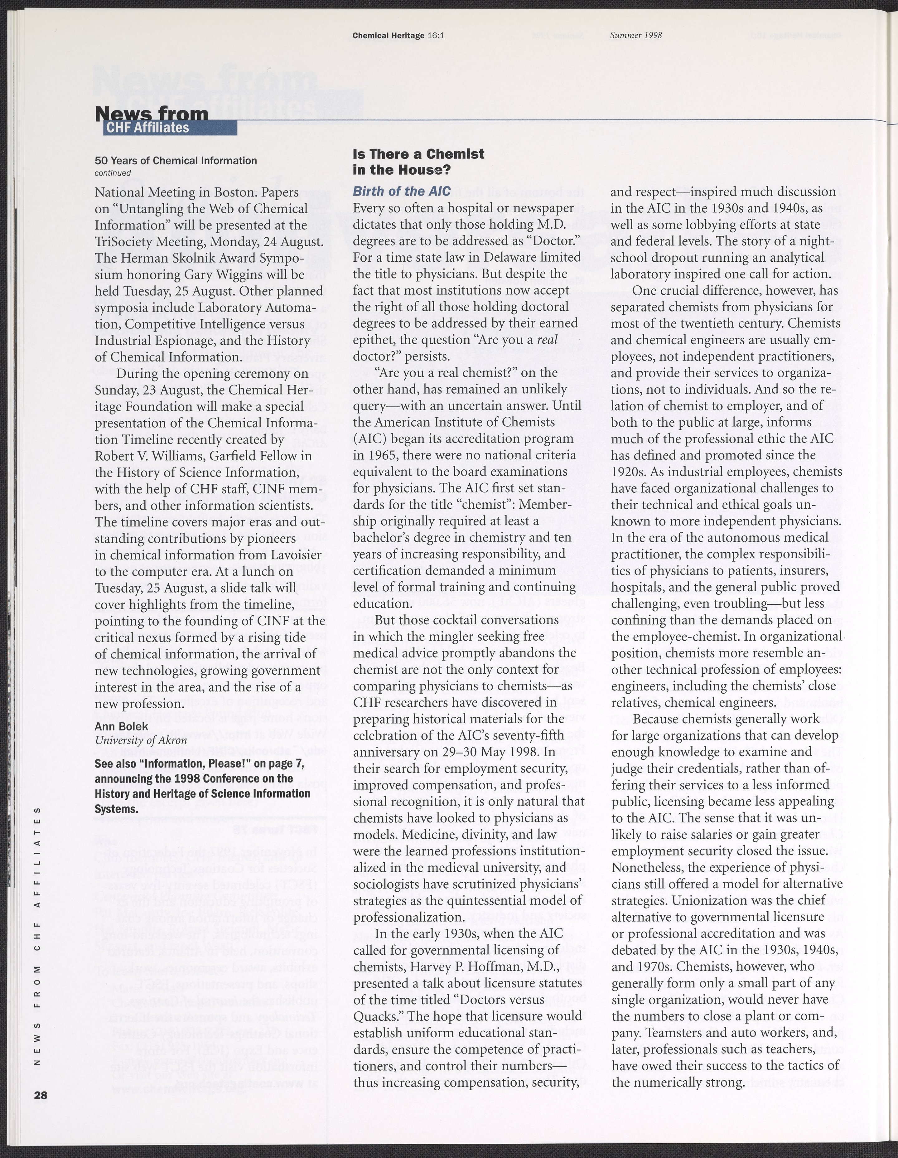 “Chemical Heritage, Volume 16 Number 1.” Philadelphia, Pennsylvania: Chemical Heritage Foundation, 1998. 099C001. Science History Institute. Philadelphia. https://digital.sciencehistory.org/works/ml0gd3o.