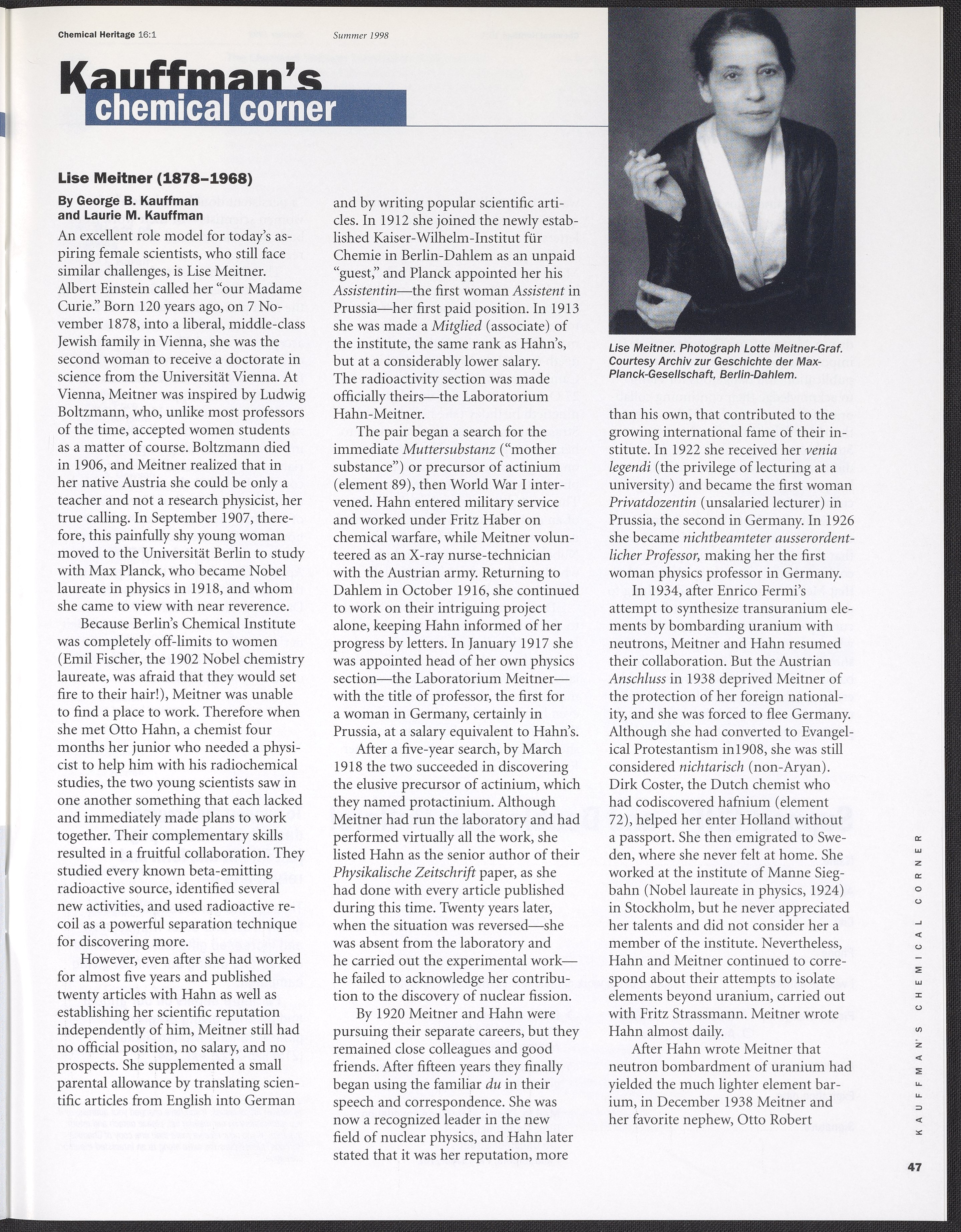Chemical Heritage, Volume 16 Number 1