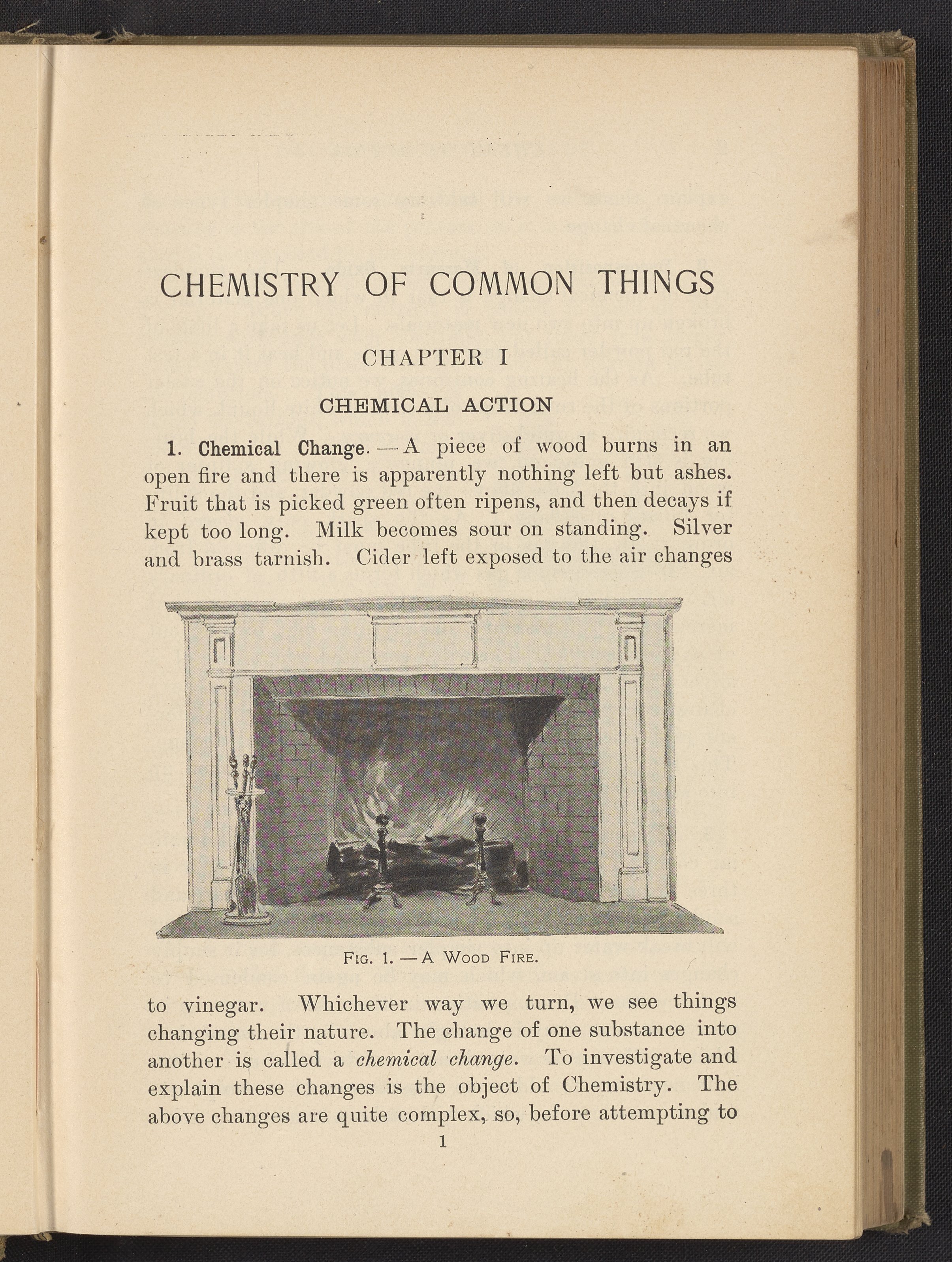 Brownlee, Raymond B. (Raymond Bedell), Fuller, Robert W. (Robert Warren), William J. Hancock, and Whitsit, Jesse E. (Jesse Elon). “Chemistry of Common Things.” New York, New York: Allyn and Bacon, circa 1914. QD33 .B69 1914. Science History Institute. Philadelphia. https://digital.sciencehistory.org/works/mn24n64.