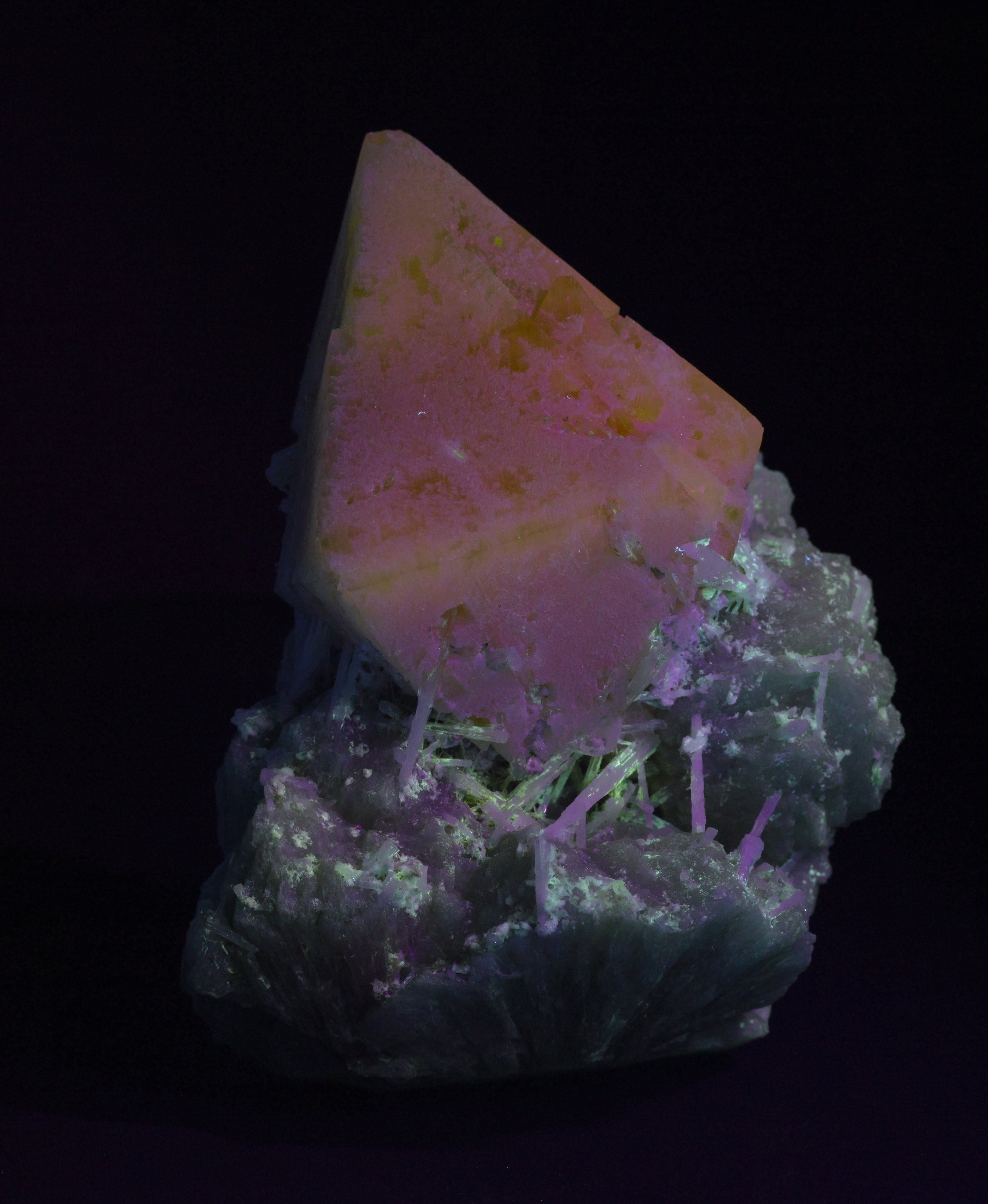 This particular specimen is peach-hued and one of the largest examples of a powellite single crystal ever found.