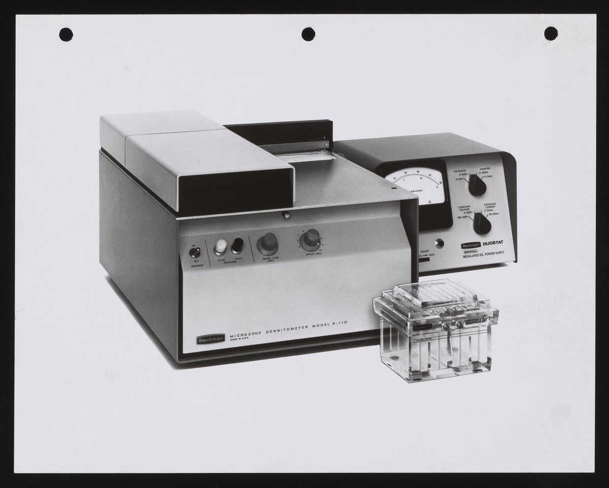 Beckman Microzone Model R-110 Densitometer, Duostat power supply, and electrophoresis cell
