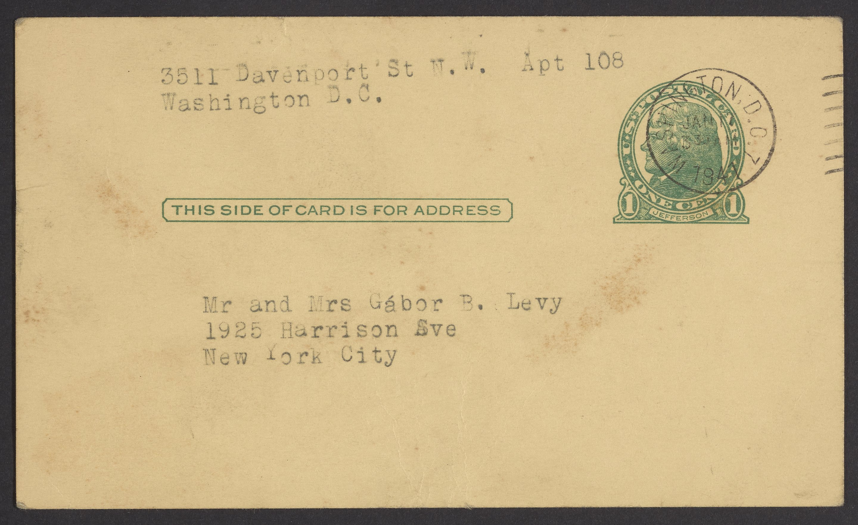 Teller, Augusta H. “Letter to Friedl and Gabor B. Levy from Mici Teller, January 17, 1941,” January 17, 1941. Papers of Gabor B. Levy, Box 2, Folder 5. Science History Institute. Philadelphia. https://digital.sciencehistory.org/works/mr19xho.